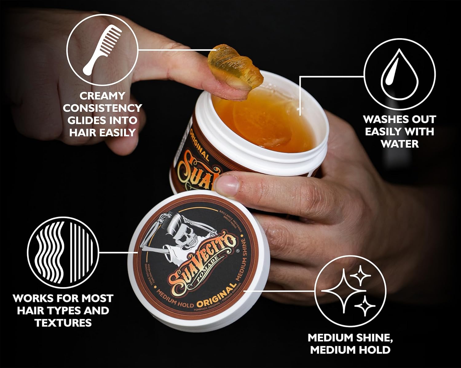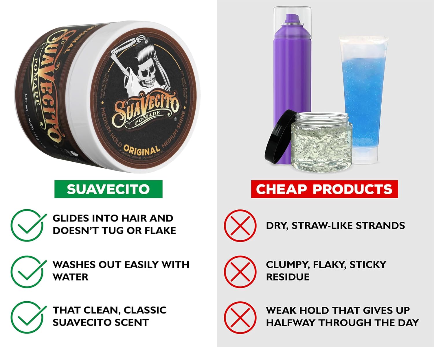 Suavecito Pomade For Men - Medium Hold Shine Water Based oz Pack Wax Like Flake All Day Hair Free Gel Hairstyles Easy To Wash Out