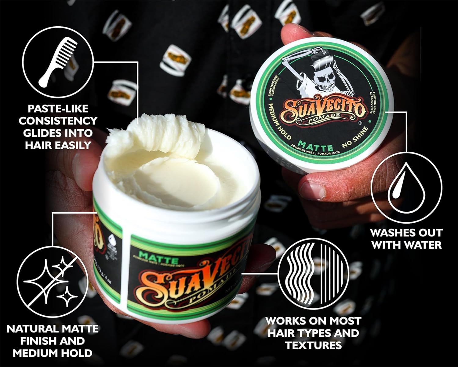 Suavecito Pomade Matte (No Shine) Formula 4 Oz, 1 Pack - Medium Hold Hair Pomade For Men - Matte Hair Paste For Natural Texture Hairstyles