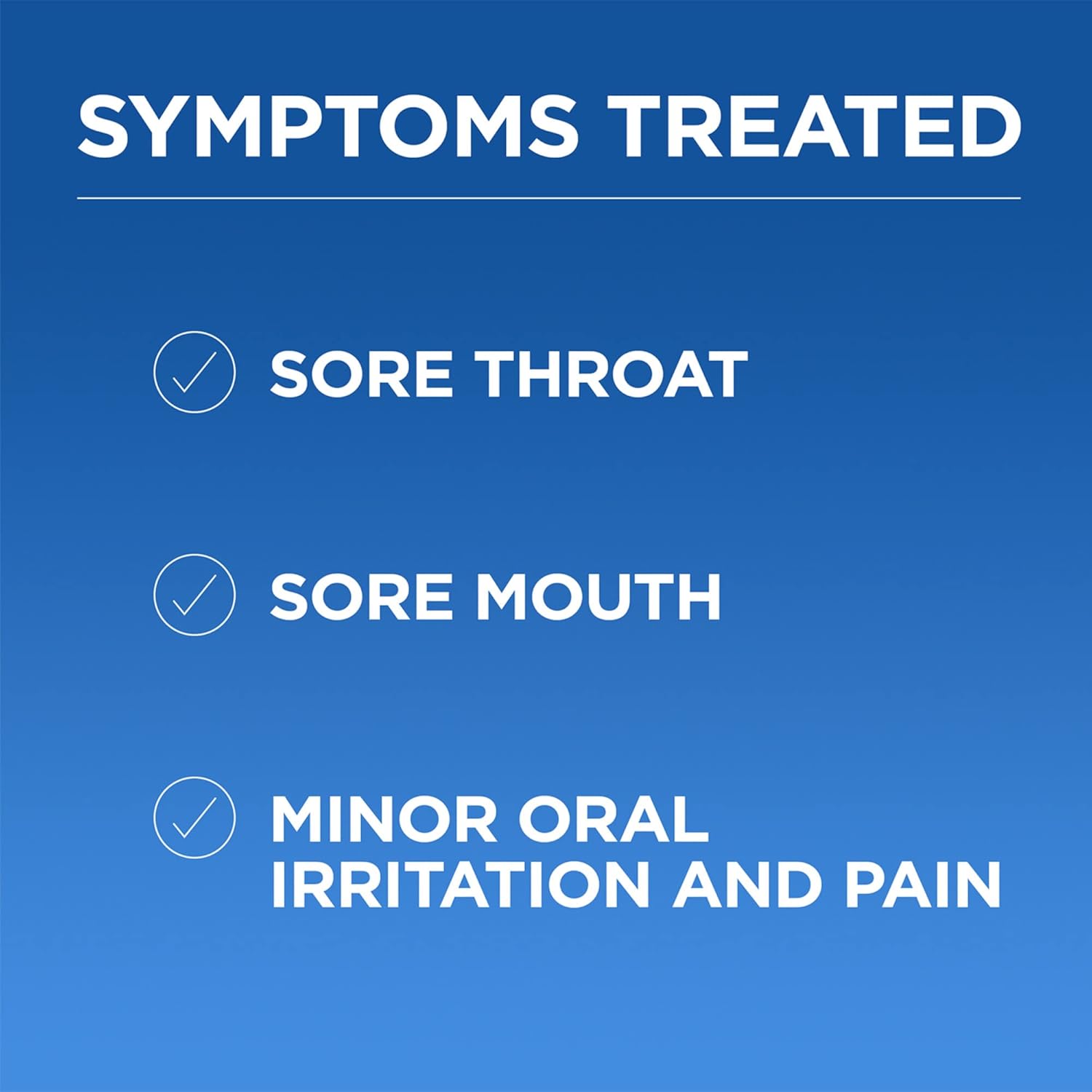INDICATIONS: For temporary relief of occasional minor irritation, pain, sore mouth and sore throat,For temporary relief of occasional minor irritation, pain, sore mouth and sore throat