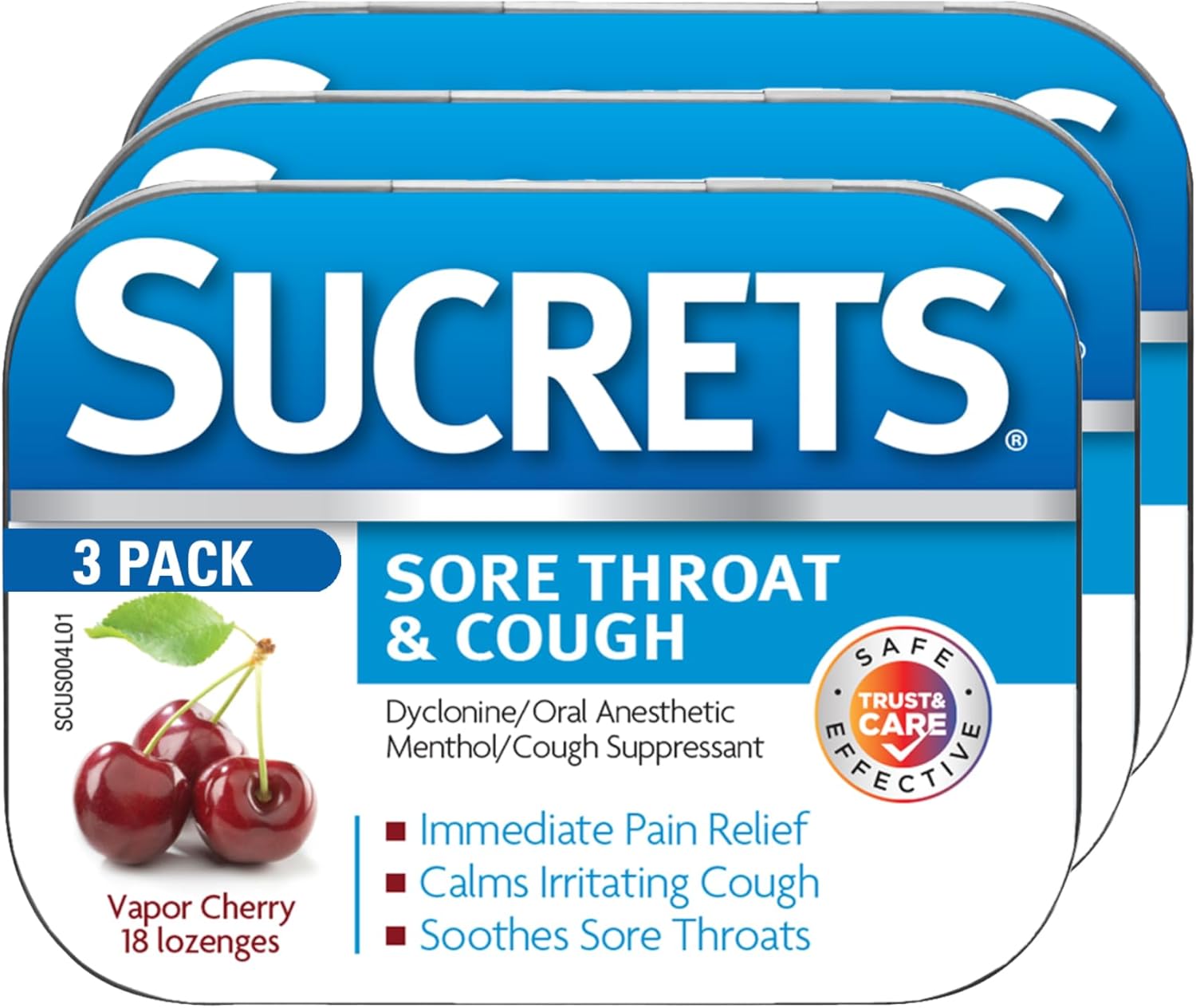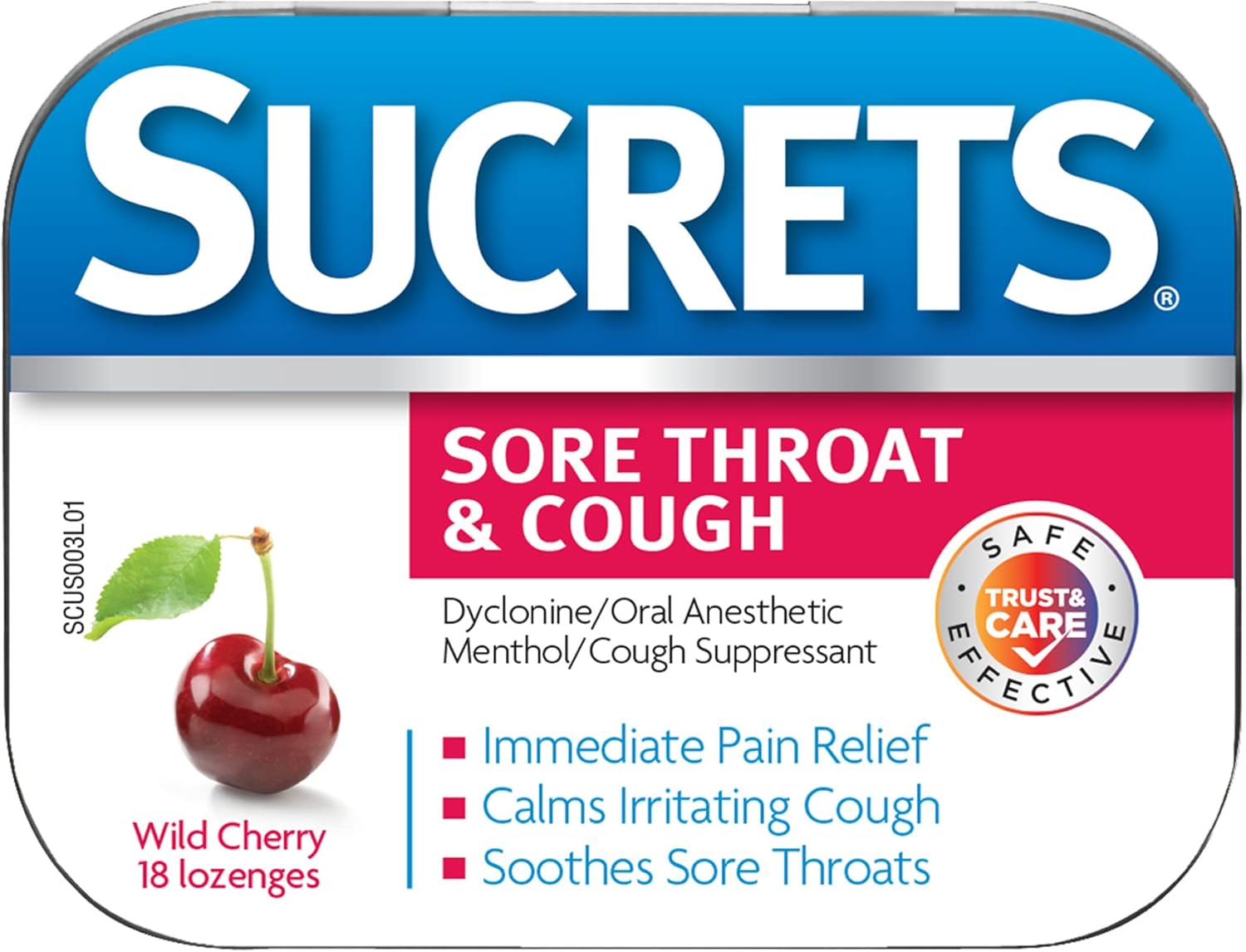 Sucrets Sore Throat Lozenges, Wild Cherry Flavor, 18 Count
