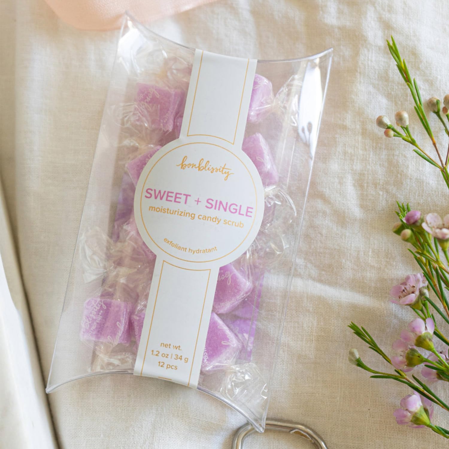 Experience luxurious exfoliation and deep hydration in one simple step with the Bonblissity Sugar Cube Candy Scrub. These individually wrapped, single-use cubes gently polish, cleanse, and moisturize your skin, leaving it feeling incredibly soft and smooth—without any greasy residue. Perfect for hands, feet, or any dry areas that need extra care, every mini exfoliating body scrub in this pack will enhance your self-care routine. Formulated with a blend of fine grain salt and pure cane sugar, this body exfoliator buffs away dull skin while nourishing with rich cocoa, shea, and avocado butters. Infused with avocado, macadamia, and sweet almond oils plus vitamin E, the hand scrub melts into a hydrating lotion, locking in moisture for skin that feels silky and refreshed. Whether you need an on-the-go body scrub exfoliator, hand treatment, or a mini spa moment at home, these compact scrubs provide instant hydration anytime, anywhere. Unlike traditional scrubs, the mess-free body exfoliator scrub cube format ensures perfectly portioned exfoliation every time. Simply crush, add water, and massage into your skin to reveal radiant, baby-soft skin in seconds. These sugar scrubs for women and men are ideal for daily use or as a luxurious treat after washing hands, showering, or before bedtime. Made for all skin types, this natural hand scrub exfoliator formula is free from harsh chemicals, making it safe and gentle for everyday use. Each sugar scrub for body, hands, and feet is wrapped in compostable packaging, making it a waste-free alternative to traditional body scrubs for women Available in a variety of scents, this sugar scrub can be purchased in your favorite fragrance or an assorted pack if you want to try them all. Whether you’re looking for a thoughtful spa gift for women, teachers, nurses, or anyone who needs extra hand care, this luxurious exfoliating scrub makes every skincare moment feel like an indulgence,Exfoliate and Hydrate – One Sugar Scrub Cube exfoliates and moisturizes in one step. It melts and transforms into lotion for soft, silky smooth skin, working like a moisturizing and exfoliating body scrub for your hands, feet, and other dry areas,Rich Natural Ingredients – Made with fine grain salt, pure cane sugar, and a blend of cocoa, shea, and avocado butter. Infused with avocado, and sweet almond oils plus vitamin E, this natural body scrub nourishes dry skin without harsh chemicals,Calming Lavender Scent – Each sugar cube relaxes you with the fragrance of Lavender. This set includes 12 sugar scrub cubes, offering a gentle aroma that promotes relaxation. It's a refreshing self-care routine that will leave you feeling calm,Vegan, Cruelty-Free, and Travel-Friendly – These TSA-approved hand scrubs are perfect for on-the-go use. Handmade in the USA, each scrub is wrapped in plant-based wrappers, providing a waste-free, guilt-free self-care experience with every use,Idea Gift for Self-Care Enthusiasts – This exfoliating scrub set is a thoughtful gift for anyone who loves spa-like relaxation. Perfect for teachers, nurses, and frequent hand-washers, these moisturizing body scrubs promote hydration after washing