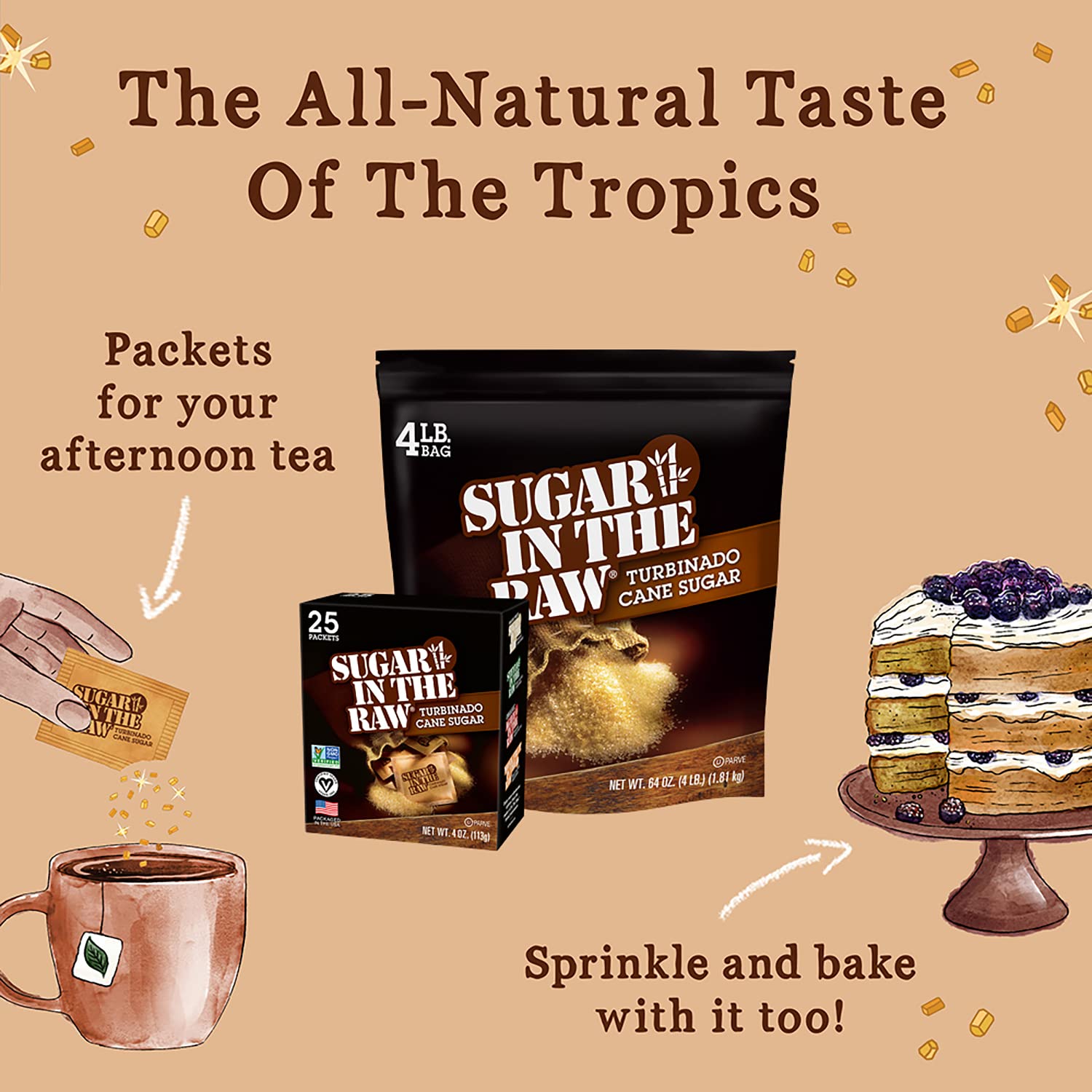 Add A Hint Of Sweetness To Your Morning Coffee Or Make A Delicious Cup Of Afternoon Tea With Sugar In The Raw Turbinado Sugar Packets. Our Hearty, Golden Turbinado Crystals Are Never Bleached – Maintaining The Rich Color And Flavor Of Their Natural Molasses. A Pure And Natural Alternative To Refined Sugar, It'S Non-Gmo Project Certified, Vegan, Kosher And Gluten Free. Sprinkle And Stir Premium Sweetness With Sugar In The Raw Packets. We’Re A Sweetener Family. Since We Launched Our Iconic Brown Packets In 1970, We’Ve Been Focused On One Thing, And One Thing Only, Scouring The Globe To Bring You The Finest Quality Sweeteners That Nature Has To Offer. From Turbinado To Honey, Stevia To Agave, We Proudly Stand As The Leading Go-To Brand For Anyone Looking To Naturally Sweeten Any Moment