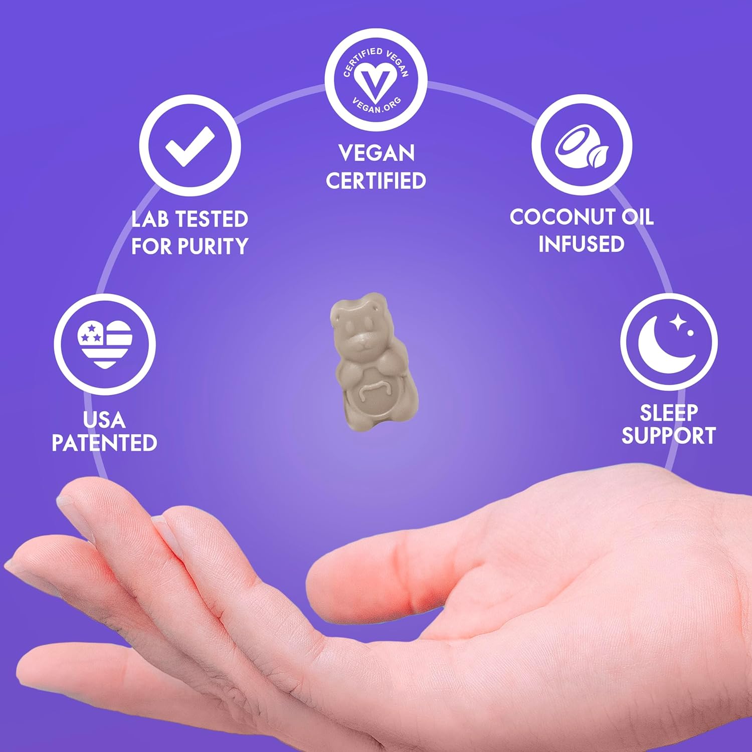Sugarbear Sleep gummies are an easy-to-use, scientifically formulated, vegan vitamin complex designed to help you sleep!Formulated with Melatonin, the berry-flavored chewable gummies also include our proprietary Amino Blend consisting of L-Theanine, Lemon Balm Leaf, Passionflower, Valerian Root, and 5-HTPSugarbear Sleep are vegan, soy-free, gluten-free, cruelty-free gummy vitamins that you can enjoy!These gummies may cause drowsiness. Do no drive, operate machinery, or consume alcohol while using. Keep bears out of sunlight. Store in a cool, dry place. Color of the vitamins will change over time. The vitamins are still safe and effective with this color changeDISCLAIMER: These statements have not been evaluated by the Food and Drug Administration. This product is not intended to diagnose, treat, cure or prevent any disease. The views and nutritional advice expressed by Sugarbear are not intended to be a substitute for conventional medical service. If you have a severe medical condition, see your physician of choice. Individual results may varyDISCLAIMER: These statements have not been evaluated by the Food and Drug Administration. This product is not intended to diagnose, treat, cure or prevent any disease. The views and nutritional advice expressed by Sugarbear are not intended to be a substitute for conventional medical service. If you have a severe medical condition, see your physician of choice. Individual results may vary