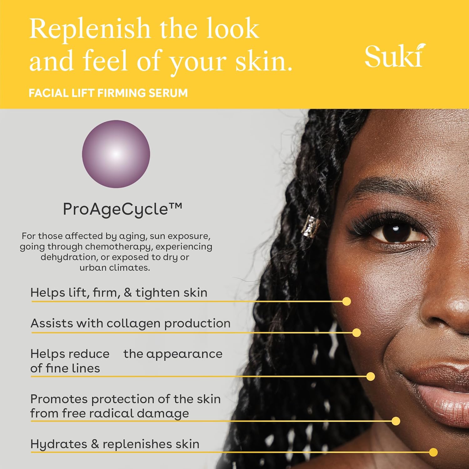Suki Anti Aging Face Serum: Facial Lift Firming Serum - Plumping Day & Night Anti Wrinkle Serum For Face Skin Care With Hydrating Hyaluronic Acid, Retinol Alternative Bakuchiol, Plant Stem Cells 1Oz