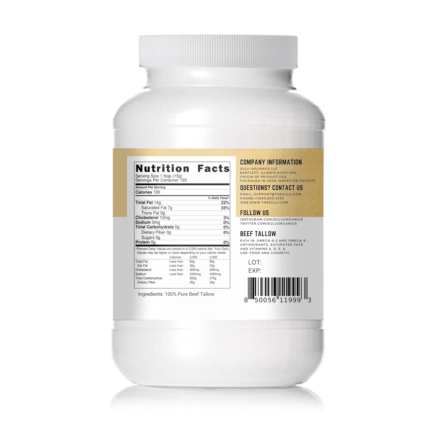 Sulu 100% Pure Rendered Grass Fed Beef Tallow-Food Grade- 4 Lbs/64 Oz