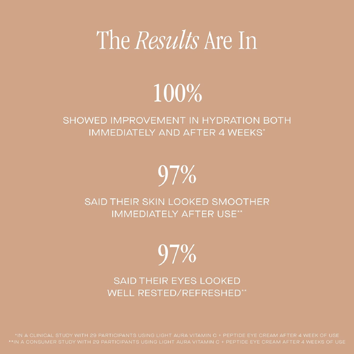 Light Aura Vitamin C + Peptide Eye Cream Is A Multitasking Eye Cream That Is All You Need For A Brighter, Firmer Look. Powered By A Vitamin C And Peptide Blend, It Visibly Brightens The Entire Eye Area And Supports Skin'S Natural Collagen Production For A Firmer, Smoother Appearance