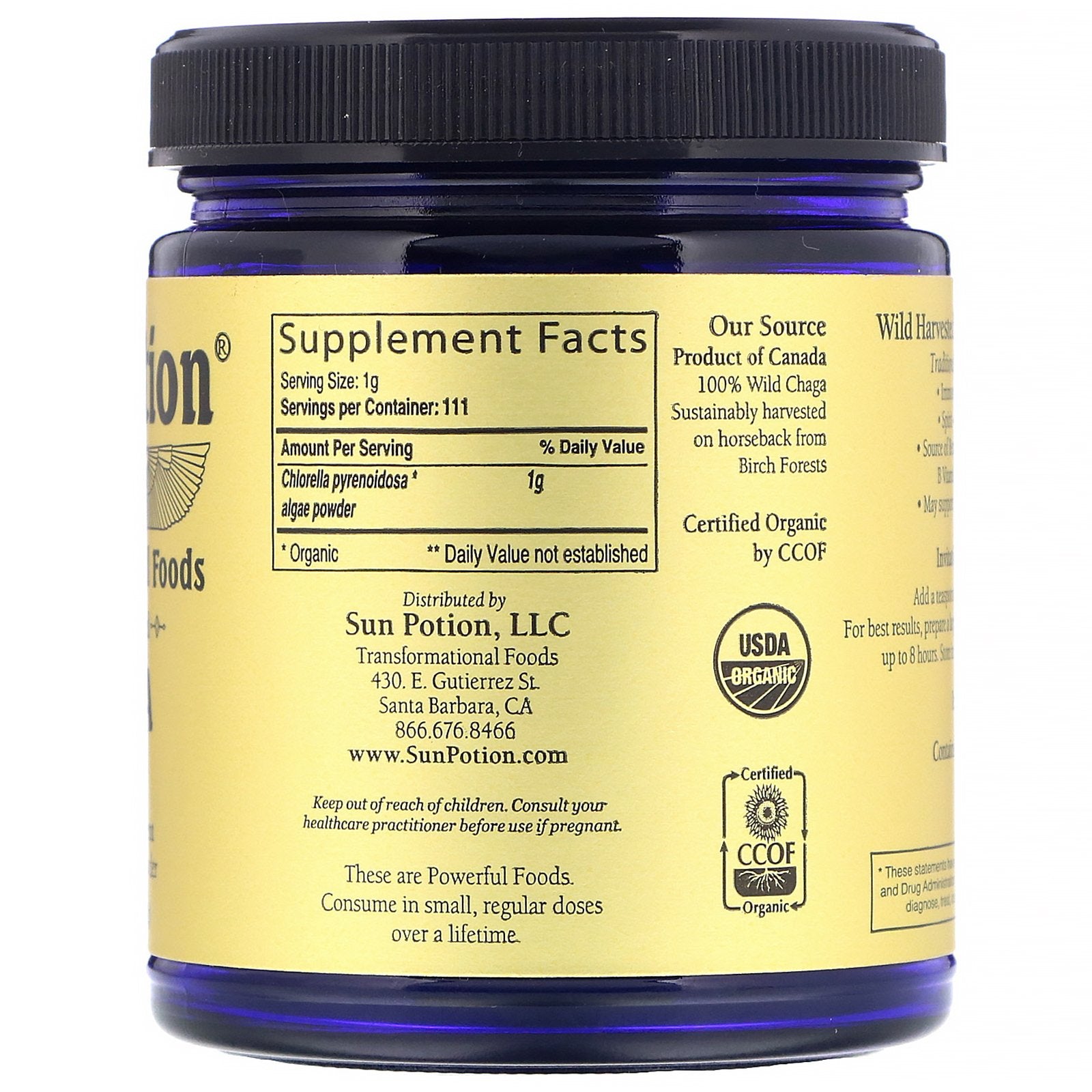 Sun Potion, Chaga Raw Mushroom Powder, Wild Harvested, (70 G)