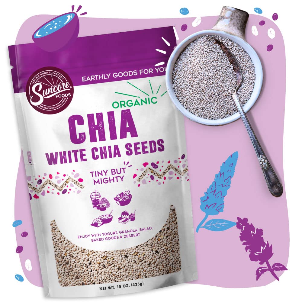 Suncore Foods Organic White Chia Seeds, Gluten-Free, Non-Gmo, 15Oz (1 Pack)