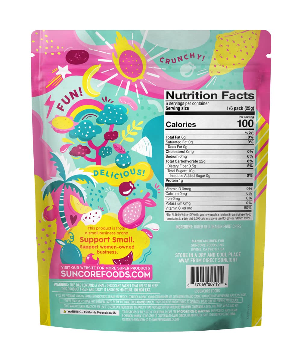 Wholly Crunch – Suncore Foods Red Dragon Fruit Chips & Snacks are made of red dragon fruit. That's it! They're freeze dried to uphold the preservation of their original state, while also transforming this juicy fruit into a fun snack with an unbelievable crunch