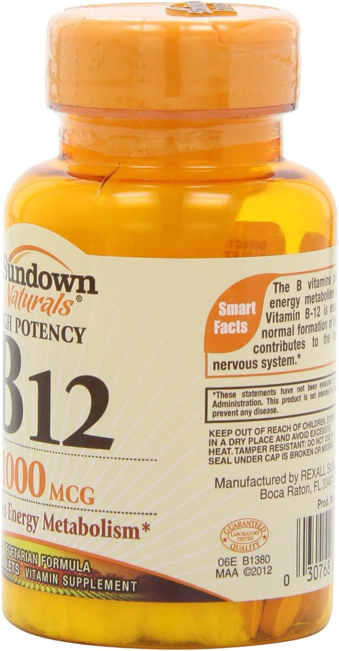 Sundown High Potency, Vitamin B-12 1000 Mcg, 60 Tablets (Pack Of 4)