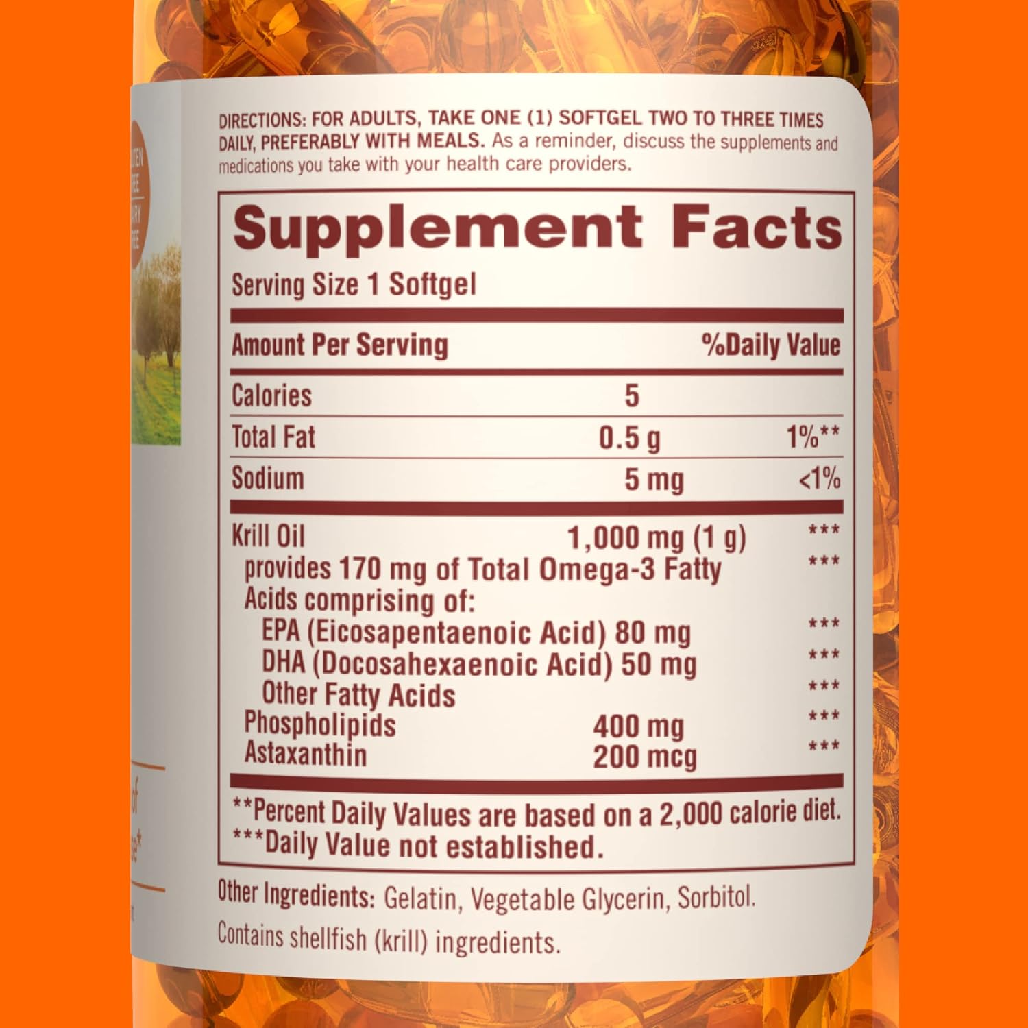 Sundown Red Krill Oil 1000 mg Softgels, Supports Heart Health, 60 Count (Packaging May Vary)
