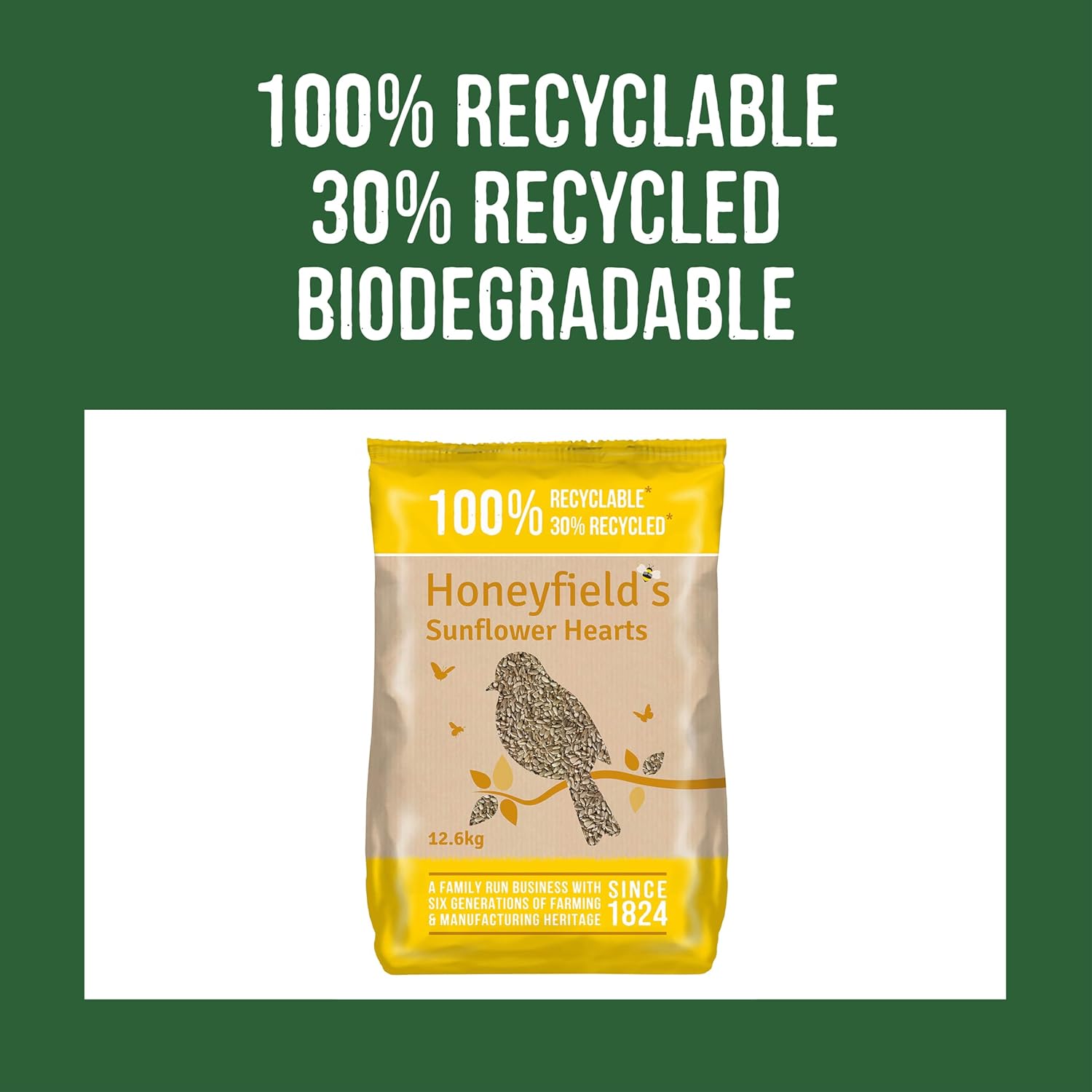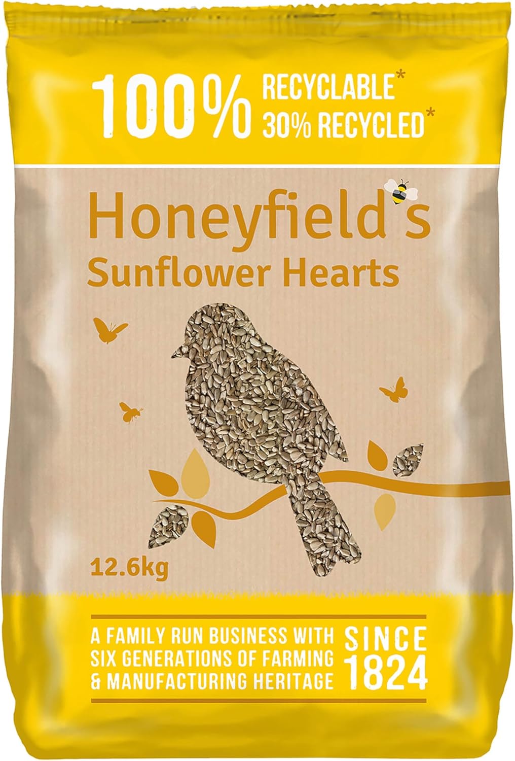 Sunflower Hearts Bird Food - Wild Bird Food For Small Birds, High In Energy And Protein, Great For Hanging Feeders, Bird Tables, And Ground Feeding, Bulk Bag (12.6Kg) - Honeyfield’S71050112