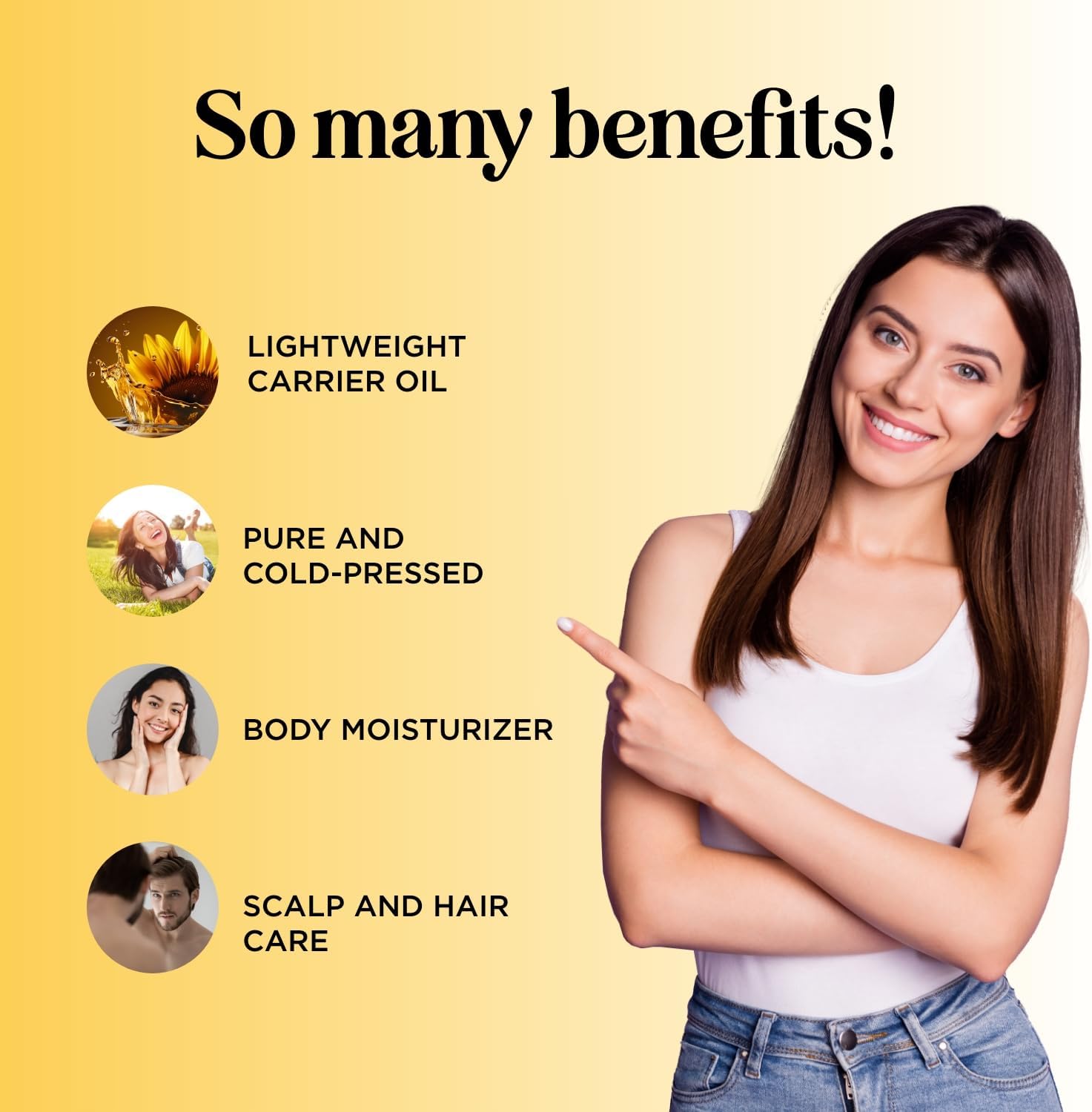 Sunflower Oil for Hair Skin and Nails - Anti Aging Skin Care with Vitamin E Oil for Skin and Hair Care - Pure Sunflower Oil Skin Moisturizer for Dry Skin and Carrier Oil for Essential Oils Mixing : Health & Household