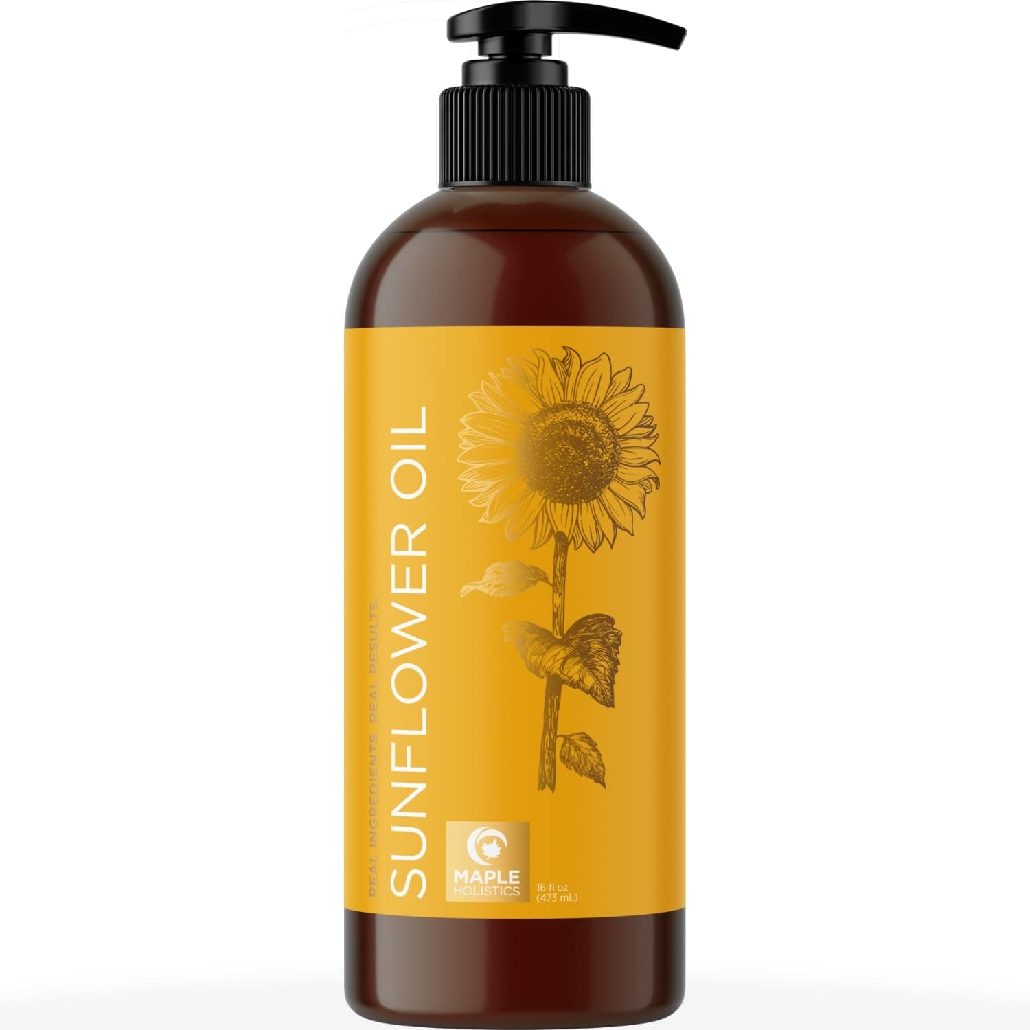 Body Oil Massage - Our body moisturizer for dry skin lets nature do the work thanks to hydrating sunflower seed oil perfect for mixing aromatherapy oils and DIY skin care products for women and menMoisturizing Skin Oil - Vitamin E rich sunflower oil is an ideal easily absorbed essential oil carrier oil allowing you to reap aromatherapeutic benefits while locking in moisture for hydrated skinFacial Skin Care Products - Our pure oil is perfect for your daily skin care regime and is rich in vitamins A B C D and E plus fatty acids that leave skin silky soft smooth and deeply hydratedHair and Scalp Oil - Take the natural approach to your frizz control hair care products for women and men with our nourishing oleic acid rich oil for hair to add some natural shine for dry scalp careMaple Holistics Quality - We are proud to be a leading source of natural oils and we invite you to try our pure sunflower oil because we believe in real ingredients for real results for premium careSunflower Oil for Hair Skin and Nails - Aromatherapy Carrier Oil for Essential Oils Mixing and Hair Oil - Body Oil Cleanser for Face Anti Aging Skin Care and Moisturizing Body Oil for Dry Skin 16oz