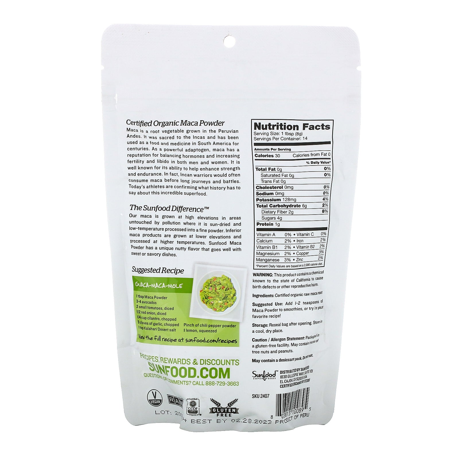 Sunfood, Superfoods, Raw Organic Maca Powder,(113 G)