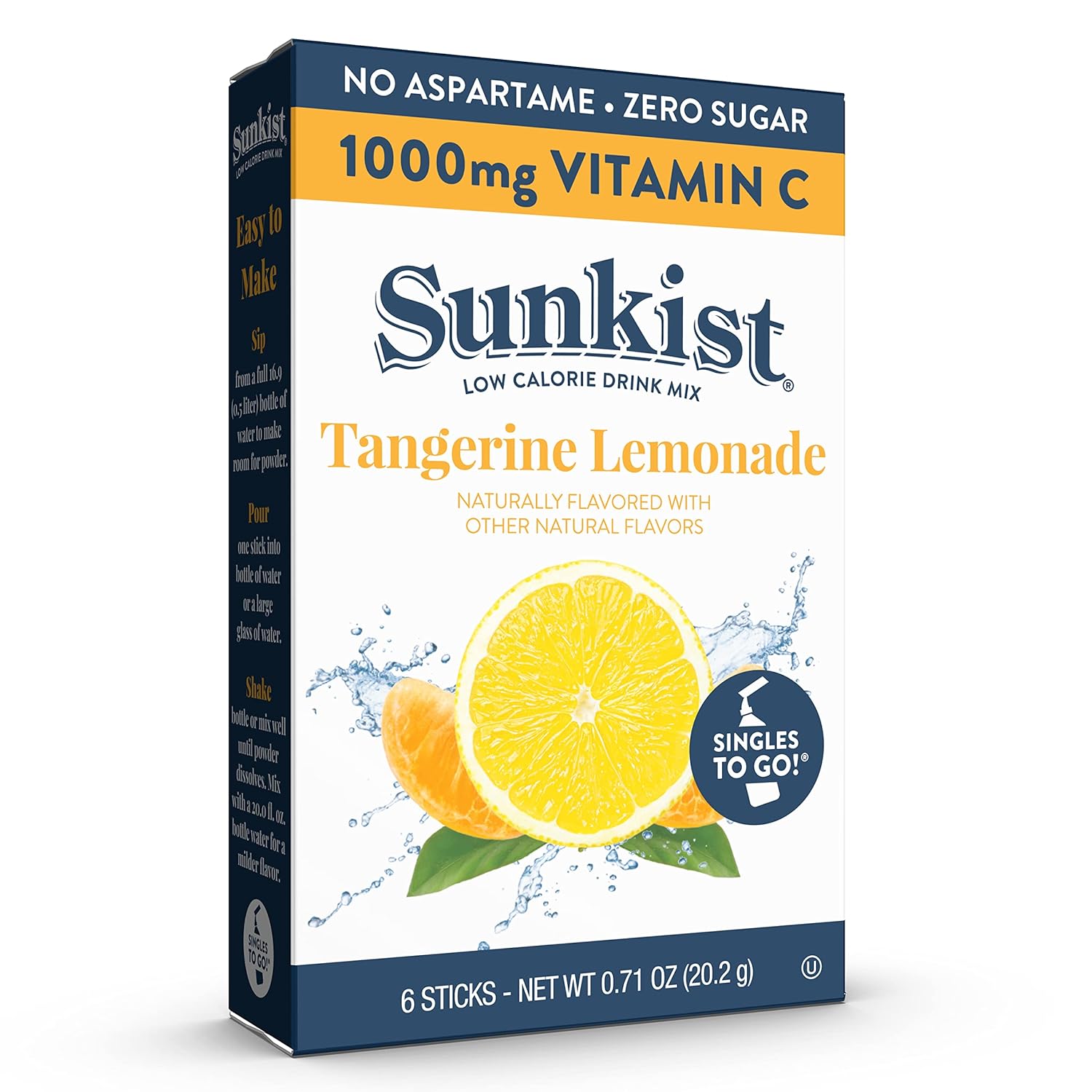 Take The Refreshing Taste Of Sunkist Singles To Go Anywhere You Go. Made With A Blend Of Natural Flavoring, Tangerine Lemonade Drink Packets Offer A Zesty Twist On Your Favorite Citrus Flavor. These Delightfully Refreshing Water Enhancers Are Not Just Packed With Flavor, But They Also Contain The Immunity Boost You Need With 1100% Dv Of Vitamin C Per Serving. Plus, They Are Low Calorie, Have Zero Sugar, And Are Aspartame And Caffeine-Free So You Can Feel Good About Enjoying Them. With 10 Vitamin C Drink Sticks Included In Each Box, You Can Always Keep Quick And Delicious Flavor Within Reach, No Matter Where Your Busy Day Takes You. Packed In Convenient, Pre-Portioned Sticks, Sunkist Powdered Drink Packets Let You Take Refreshing And Delicious Hydration Everywhere You Go. They Are Also Easy To Make β Simply Pour One Stick Into A 16.9 Oz Bottle/Glass Of Water, Shake/Stir, And Enjoy!