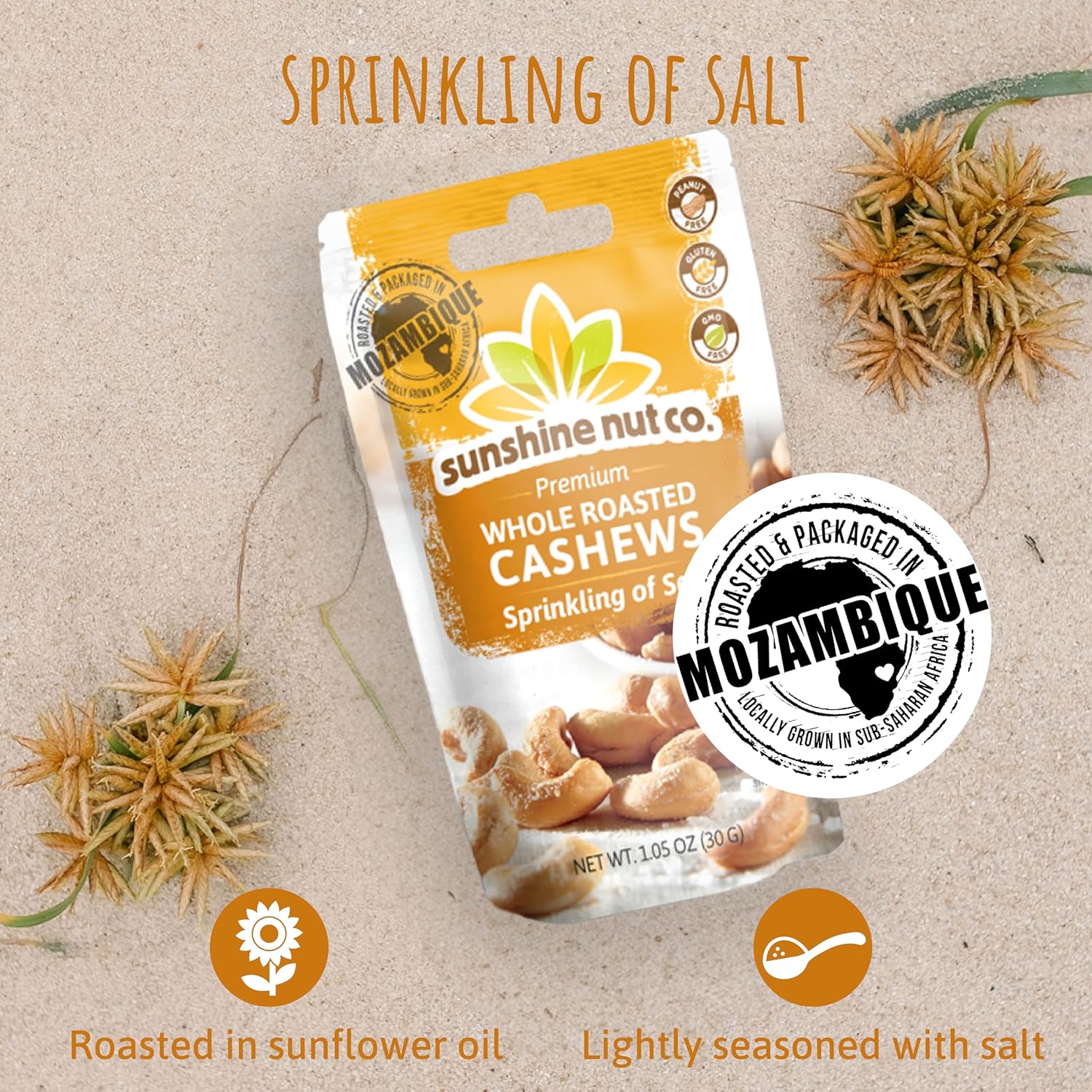 Sunshine Nut Company Whole Roasted Lightly Salted Cashews, Sprinkling Of Salt Flavor, 12-Pack, 1.05 Oz., Gluten Free, Peanut Free And Vegan Individual Snack Packs For Kids And Adults, Gmo Free