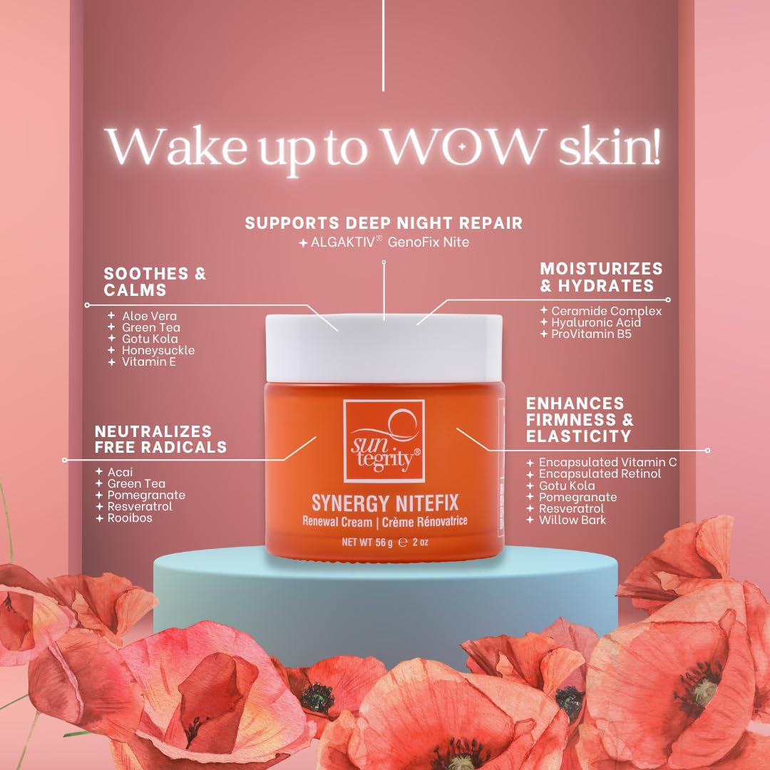 Suntegrity Synergy Nitefix - Renewal Cream, 2Oz - Use At Night And Wake Up With Wow! Skin