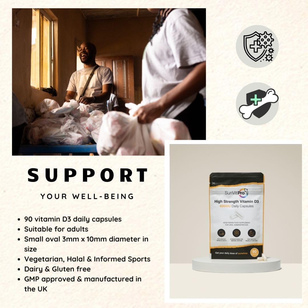 Sunvit-D3 Vitamin D3 4000 Iu Capsules | High Strength Vitamin D Capsules Supports Immune System, Bone, Teeth & Muscle Health | Gluten Free, Dairy Free | Vitamin D Supplements (90 Count)