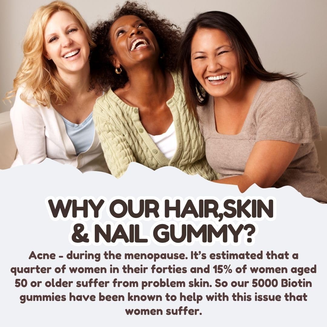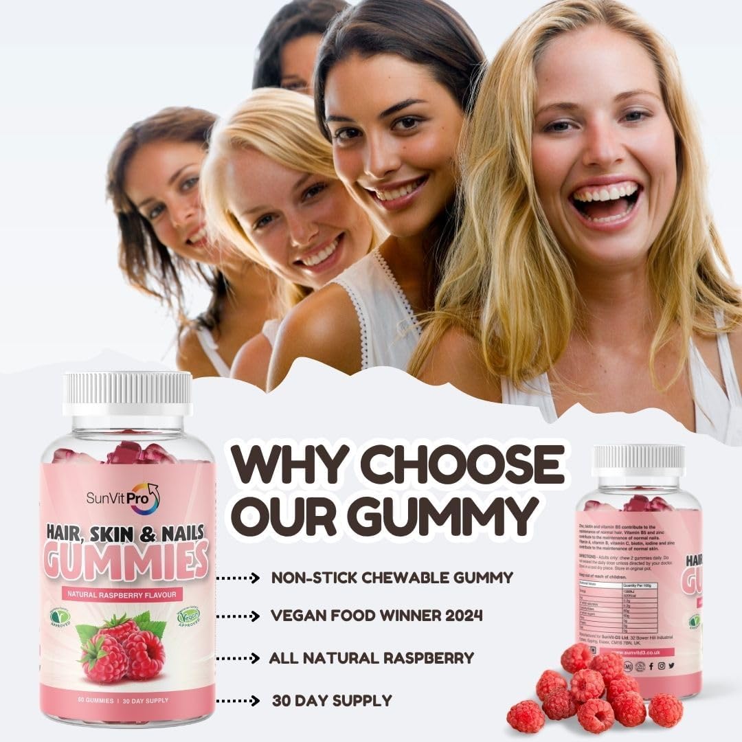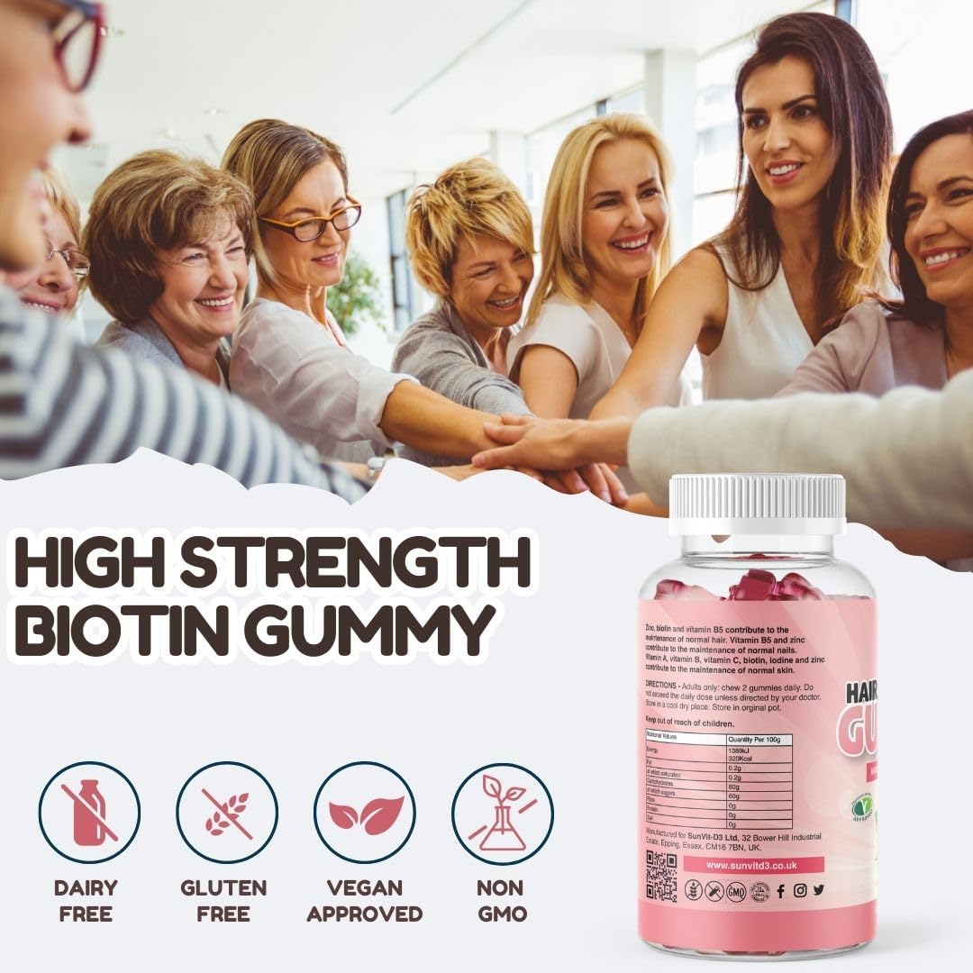 Sunvit-Pro Biotin Gummies 5,000µg - Hair Skin And Nail Vitamins, Vegan Plant Based Biotin Hair Growth Gummies For Women & Men, Supports Menopause, Perfect For Bone, Teeth & Muscle, Enhanced With Zinc