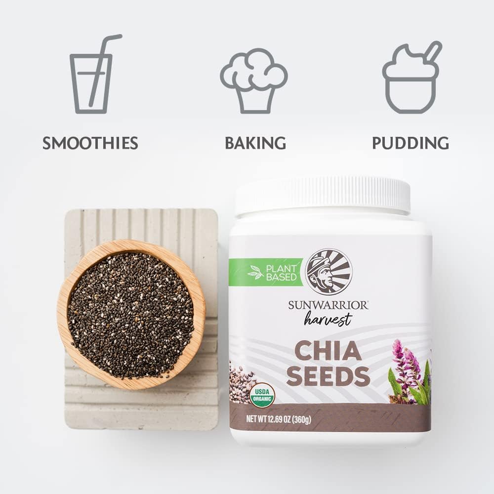 Sunwarrior Chia Seeds Organic Non-Gmo Keto Vegan Superfood Additive For Smoothies Acai Pudding Baking 360G Tub (30 Srv) Organic Harvest