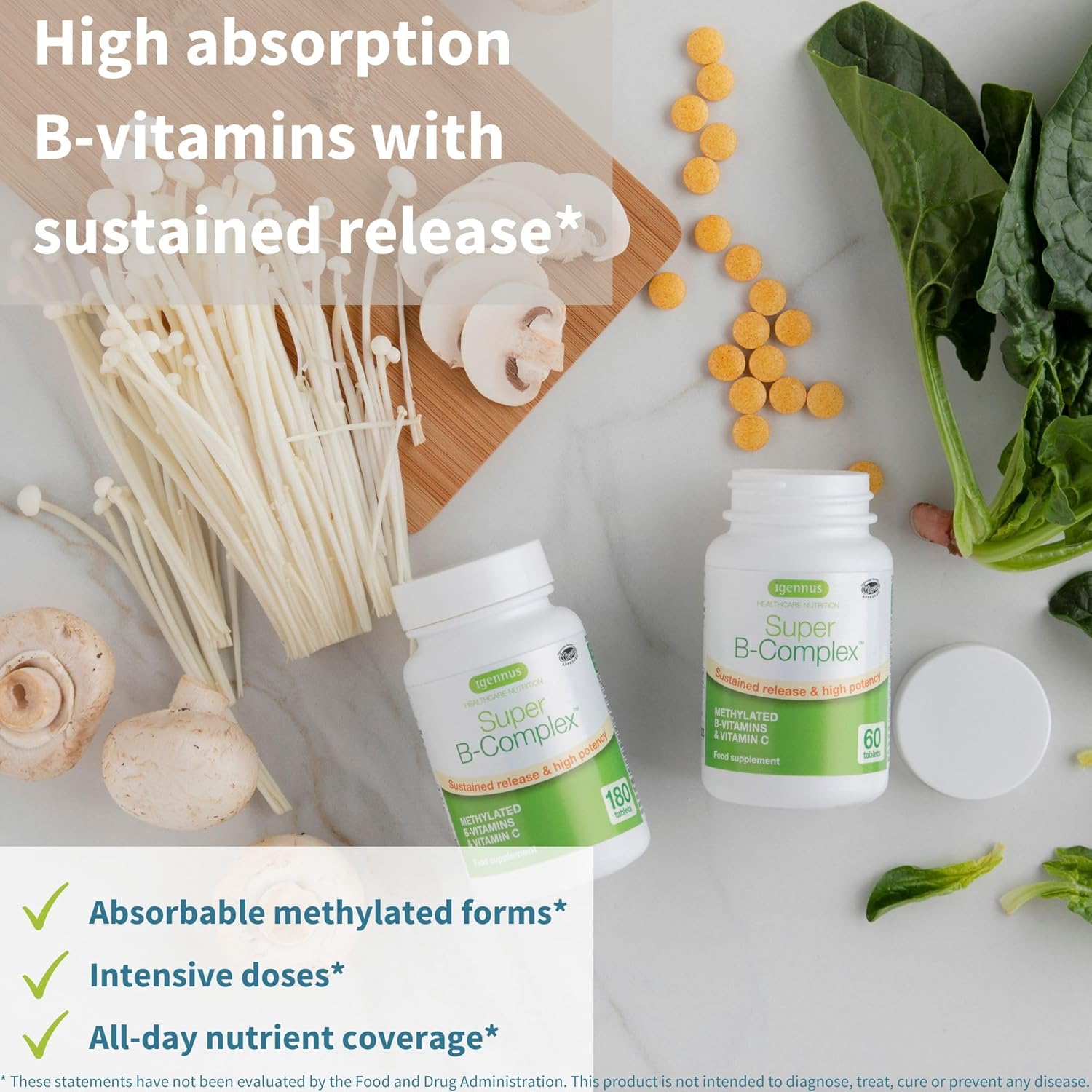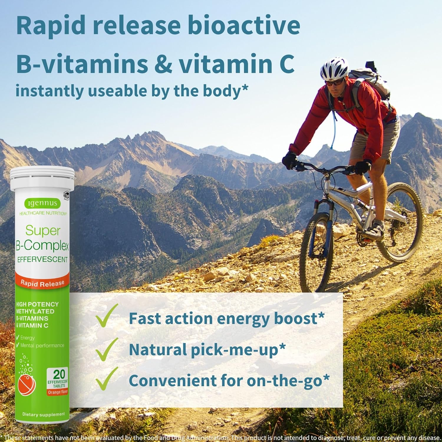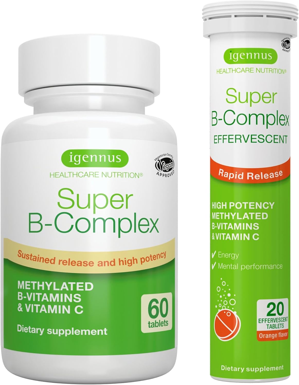 Super B-Complex & Effervescent Bundle, 60 Sustained-Release Tablets & 20 Orange Flavor Effervescent Tablets For Fast Energy On The Go, By Igennus