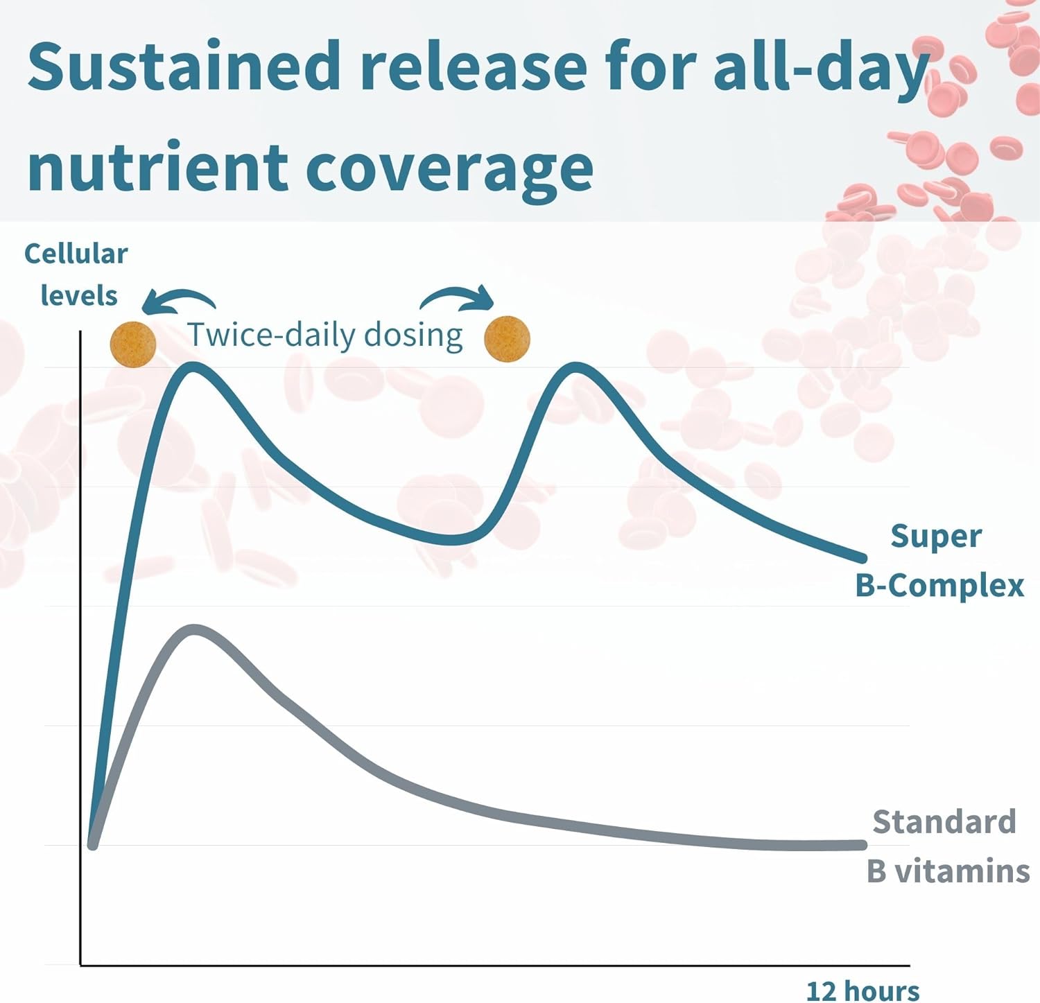 3 > ALL-DAY NUTRIENT COVERAGE - as B-vitamins are easily excreted, we use a sustained-release tablet to gradually deliver B-vitamins into your blood, retained throughout the day