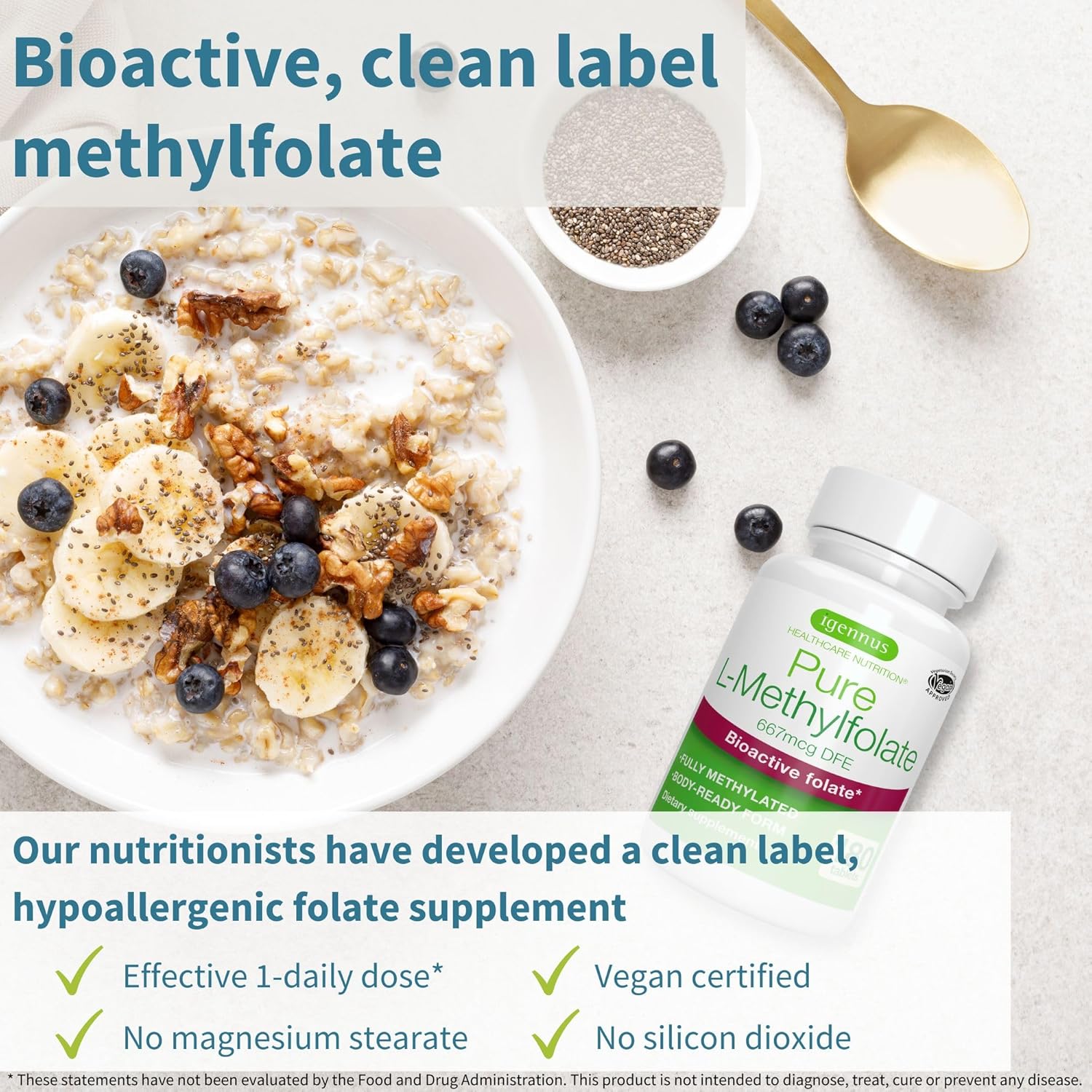 Super B12-Complex 1000Mcg + Pure Folate 400Mcg Vegan Bundle, High Absorption Sublingual Vitamin B12 With Methylcobalamin, Adenosylcobalamin & Hydroxocobalamin + Optimized L-Methylfolate, By Igennus