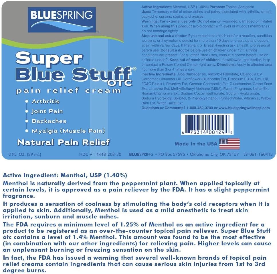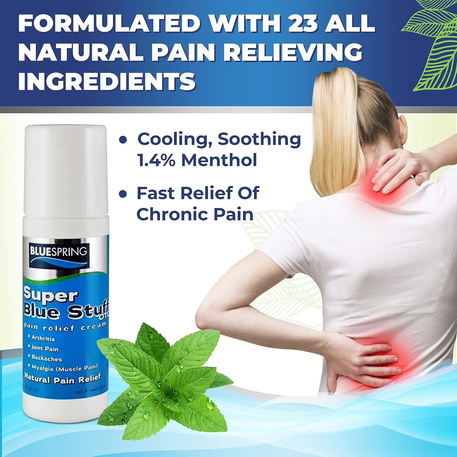 Super Blue Stuff Natural Pain Relief Roll On With Emu Oil By Bluespring- Pain Relief Rub Anti Inflammatory Analgesic Cream For Back, Knee, Joint, Muscle, Arthritis, And Neck Pain Relief- 3 Oz Roll-On