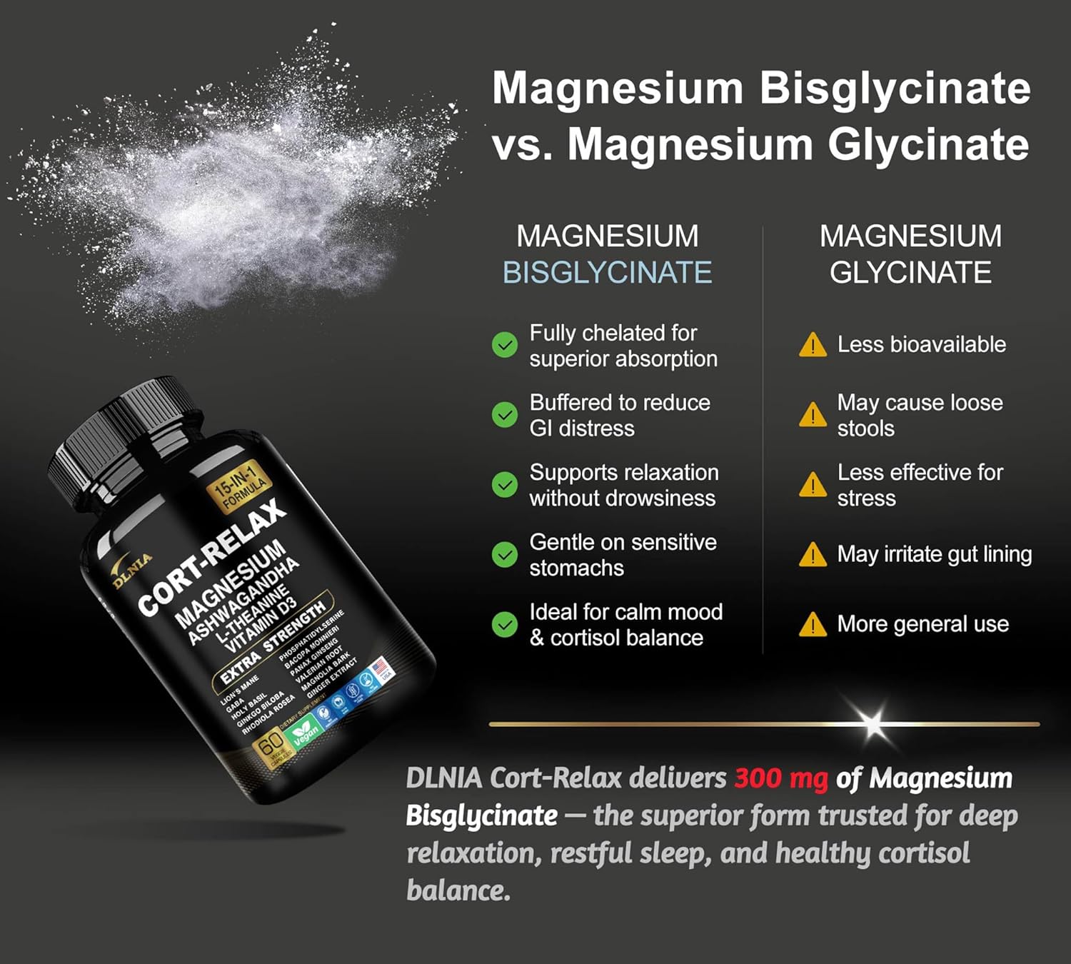 Pure Ingredients with Satisfaction Guarantee: DLNIA cortisol detox Magnesium Pills undergo rigorous third-party lab testing to ensure purity, potency, & safety. We use only premium, ethically sourced, non-GMO, plant-based ingredients manufactured in CGMP facilities. Our Magnesium glycinate supplement is free from any additives & preservatives, providing you with the wellness & strength you deserve