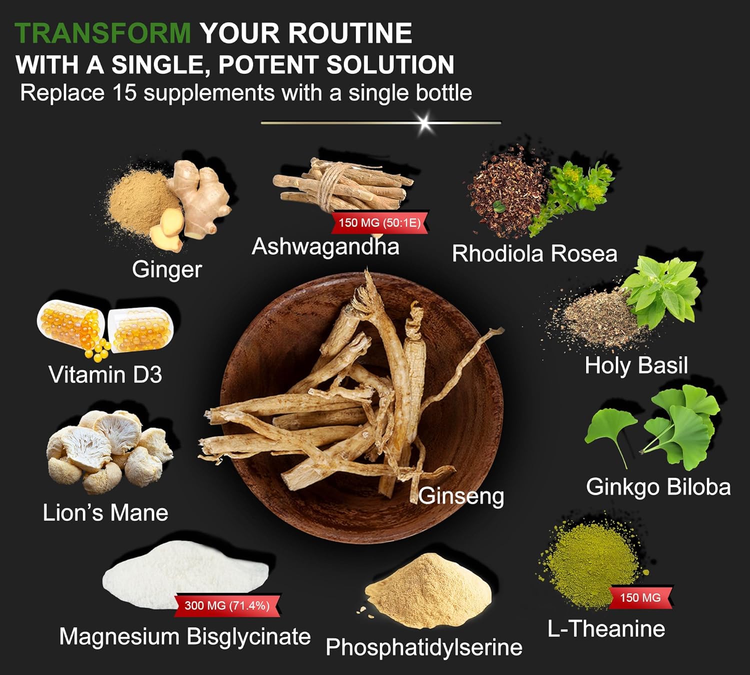 15-in-1 Extra Strength Supplement: Experience a burst of relaxation & clarity with our unique magnesium complex cortisol supplements for women and men with, L-Theanine, Ashwagandha, Phosphatidylserine, & 12+ other essential minerals blend. This cortisol reducer/manager fits perfectly into your busy lifestyle helping you in relaxation, resilience, calm and overall wellness making it the best supplement to lower cortisol