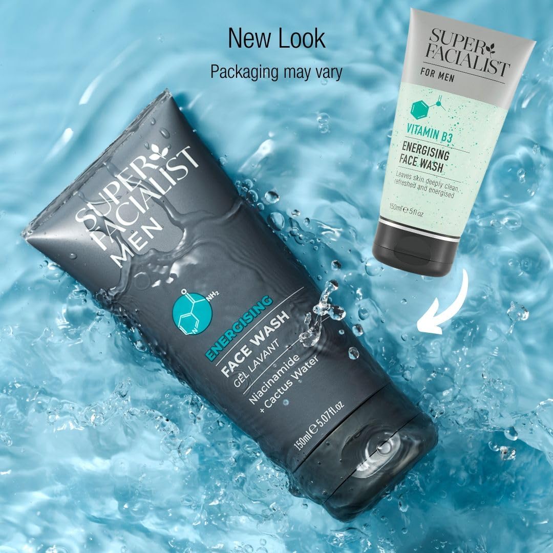 Super Facialist For Men Energising Face Wash With Vitamin B 3 - Remove Impurities & Hydrate Skin With Hyaluronic Acid, Magnesium & Vitamin E - Oil Free, Vegan Friendly, 150 Ml