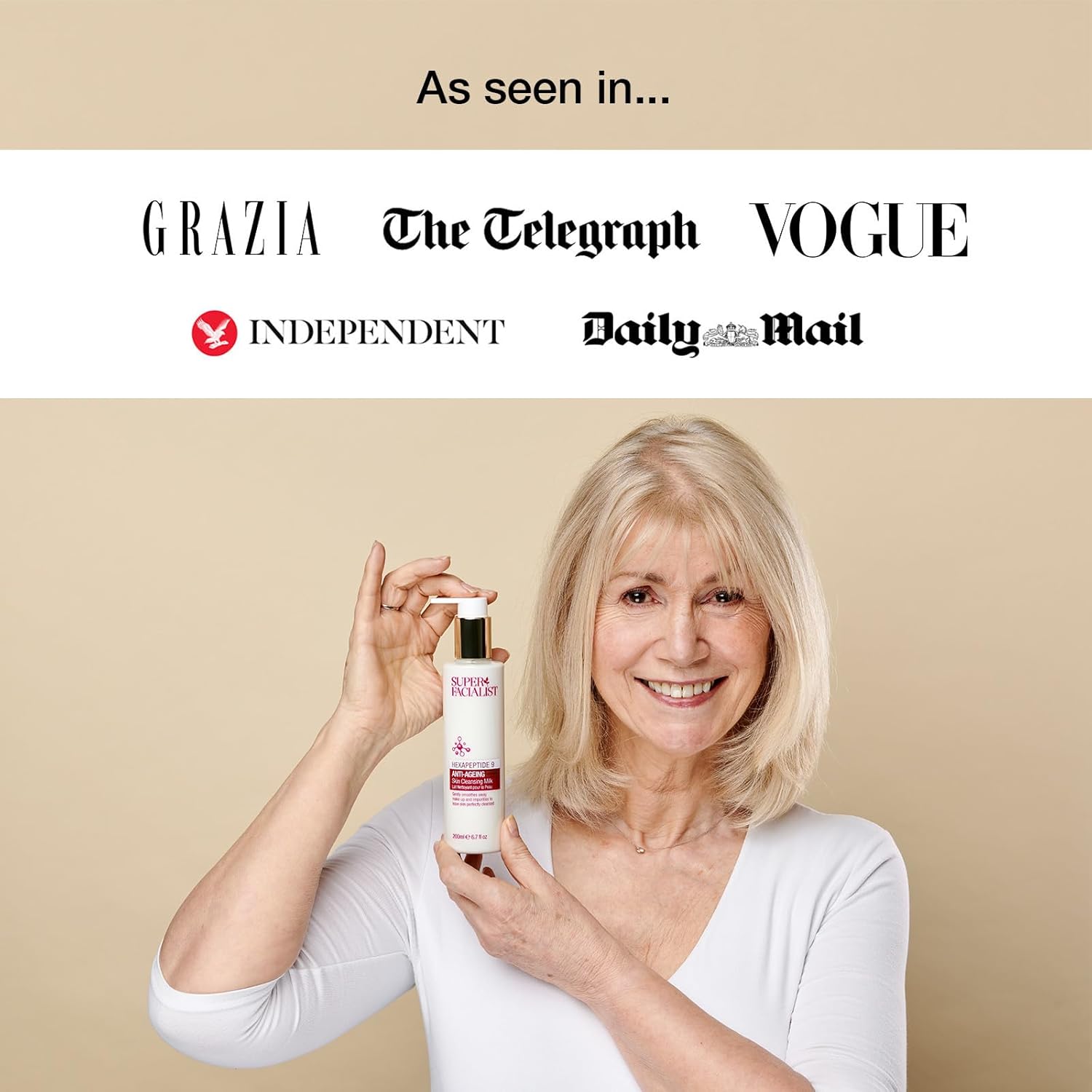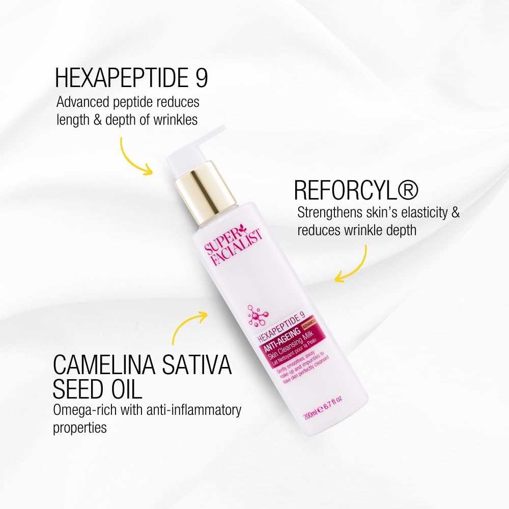 Super Facialist Hexapeptide 9 Anti-Ageing Advanced Skin Cleansing Milk - Gentle Cleanser With Almond Oil To Remove Impurities, Effective Make Up Remover, Vegan 200 Ml