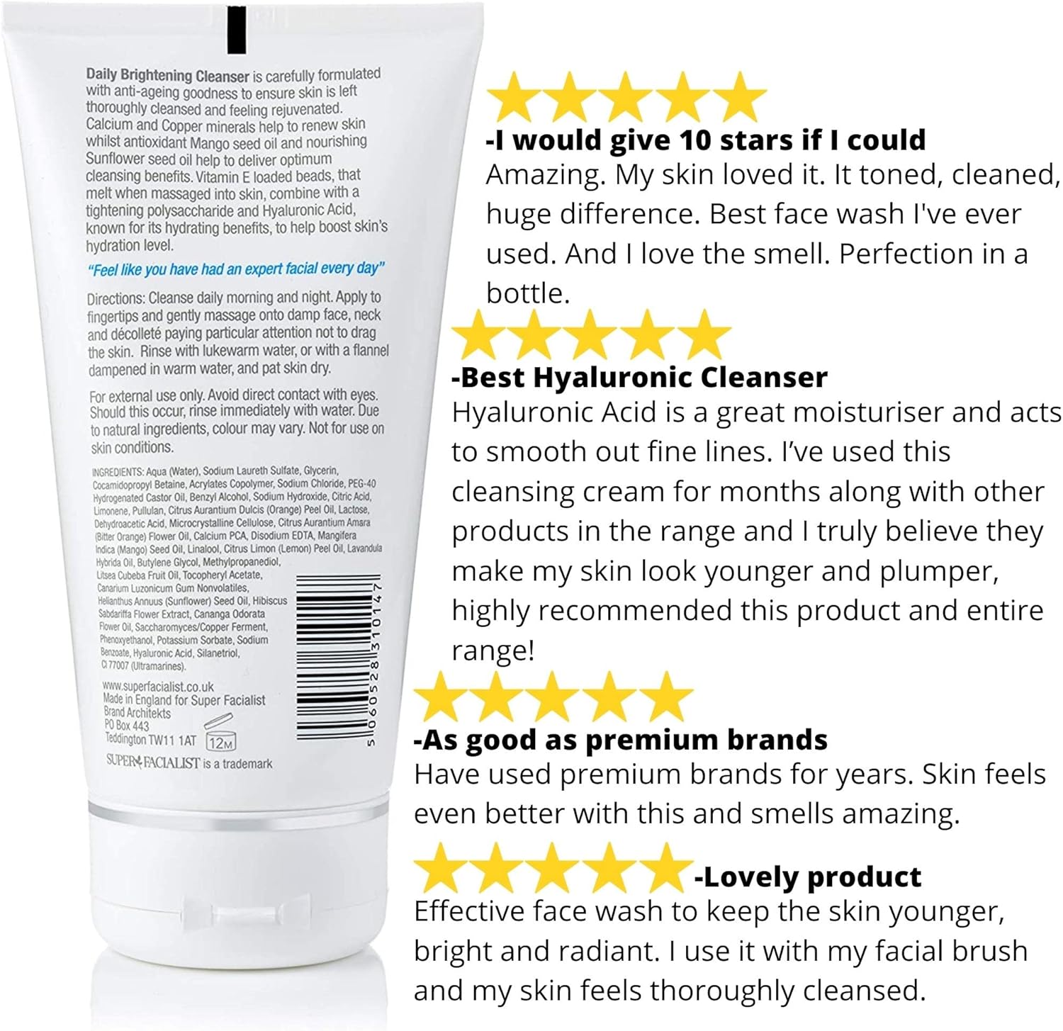 Super Facialist Hyaluronic Acid Firming Daily Cleanser - Firm, Hydrate & Lift Skin With Vitamin E & Mango Seed Oil, Gentle Face Cleanser & Face Care, Vegan Friendly, 150Ml