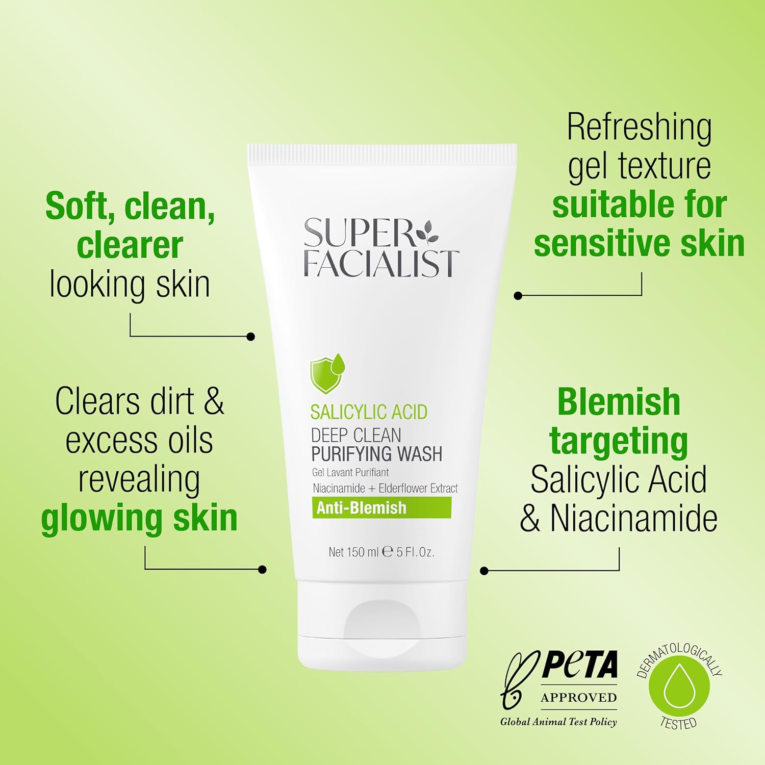 Super Facialist - Salicylic Acid Anti Blemish Purifying Cleansing Wash With Niacinamide (Vitamin B3), Face Cleanser & Face Wash For Clean And Clear Skin & Treat Acne, 150Ml