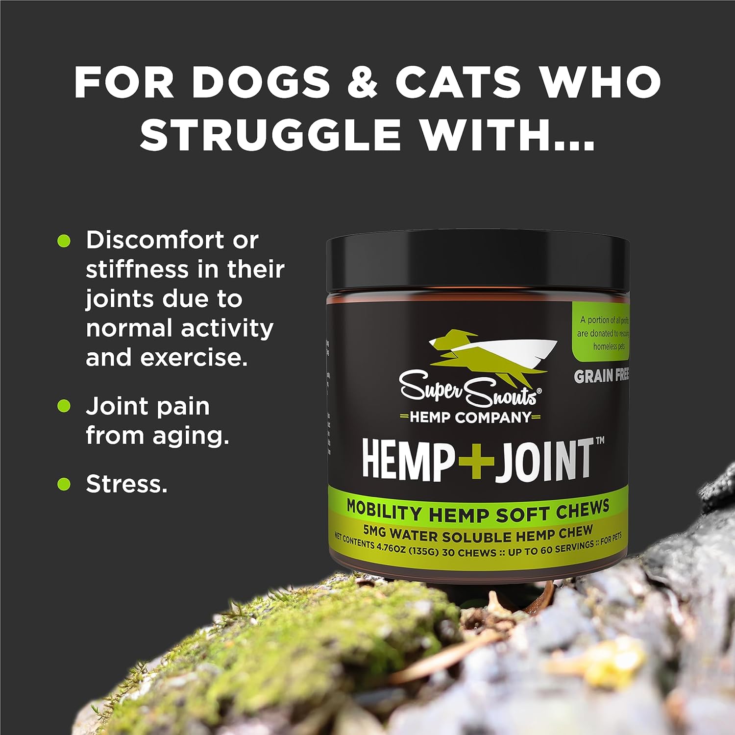 Super Snouts Hemp & Joint Chew For Dogs & Cats, 30 Chews (Up To 60 Servings) β Made In Usa Hip & Joint Supplement With Green Lipped Mussels, Hemp Helps Calms Joint Inflammation & Relief Joint Pain