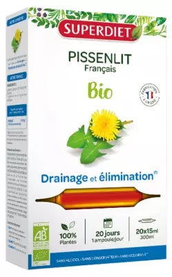 Superdiet Organic Dandelion 20 Phials Is A Food Supplement In Form Of Phials Based On Organic Dandelion To Enhance The Elimination Of Water Contained In Kidneys. Alcohol Free, Dye Free, Preservative Free. Certified Organic Farming. Control Fr-Bio-10