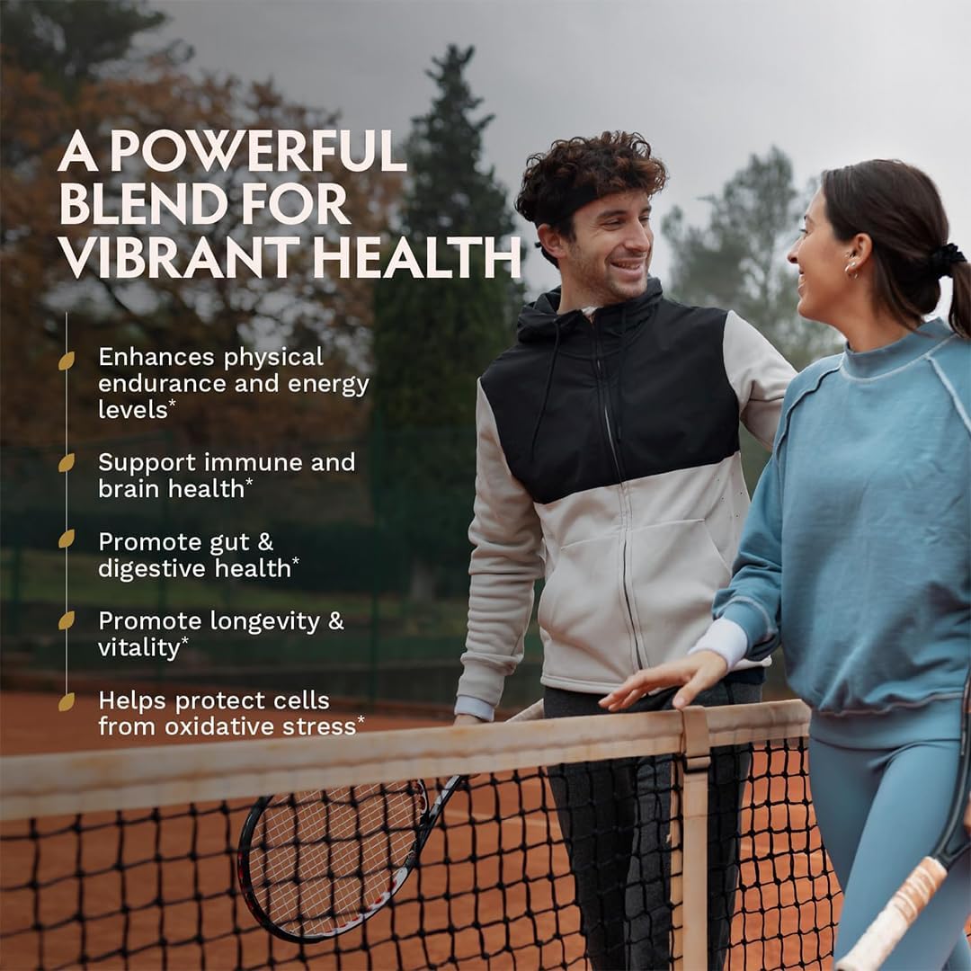 Daily Immune & Vitality Support: Packed with over 30% beta-glucans, these adaptogenic capsules promote daily immunity, helping you stay vibrant and energetic throughout your busy day