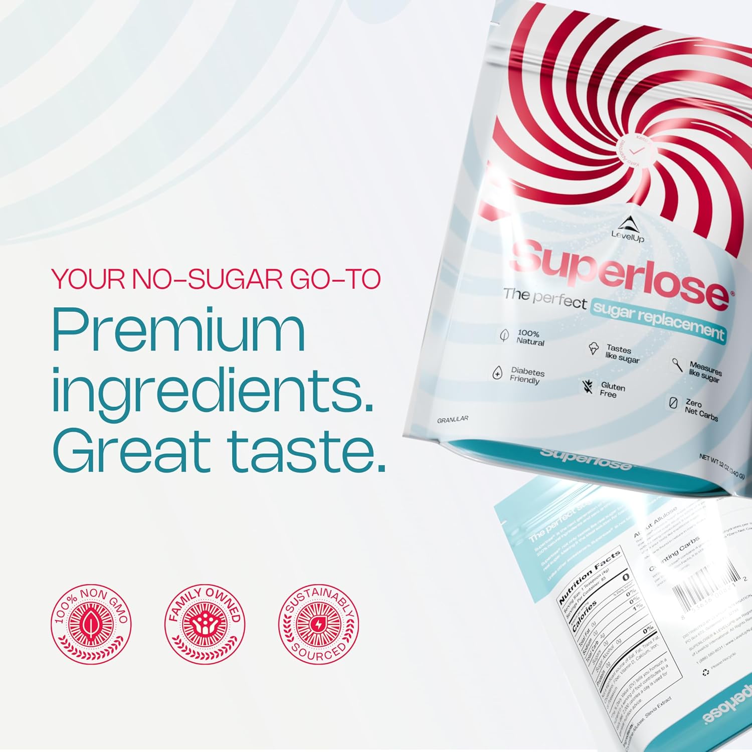Superlose | The Superior Allulose | Keto Sugar Alternative | 100% Natural No Bitter Aftertaste | Zero Net Carb Sweetener | Ketogenic and Diabetic Approved Sugar Replacement (12oz)