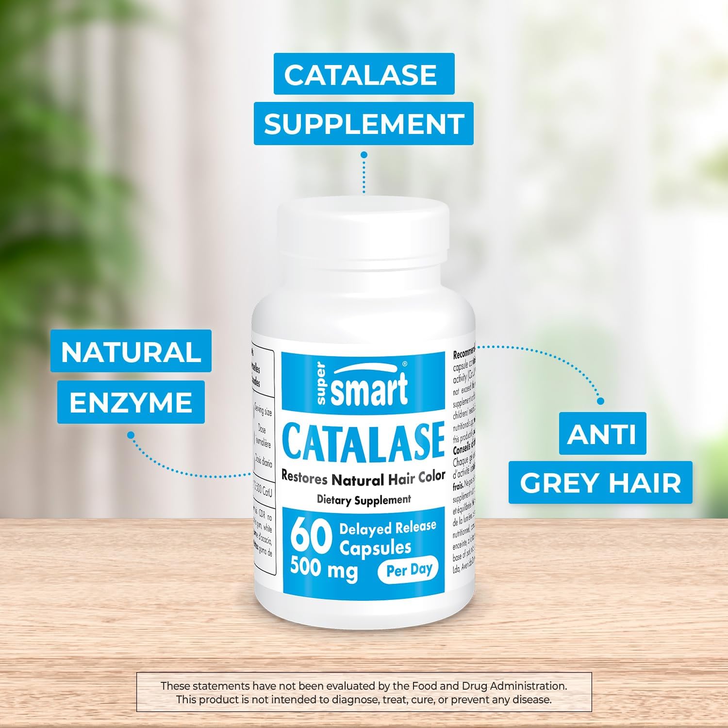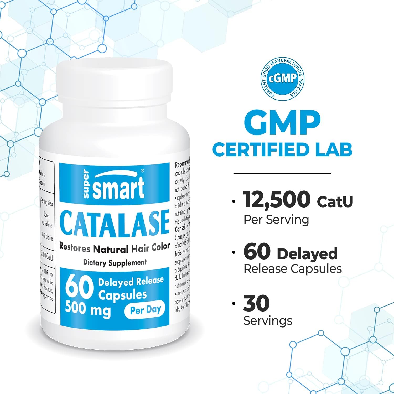 Supersmart - Catalase 500Mg Per Day (12500 Catu) - Natural Enzyme - Anti Gray Hair Supplement | Non-Gmo & Gluten Free - 60 Delayed Release Capsules