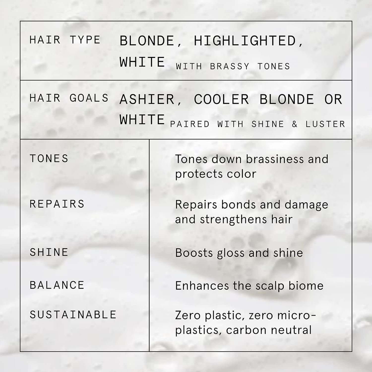 ABOUT THE PRODUCT: 1 > A toning purple shampoo that neutralizes brassiness for an ashier, cooler blonde or white while boosting long-term hair health, hydration, and shine. Color-safe, sulfate-free and silicone-free 2 > pH optimized, plant-derived 360 Triflex hair care solid that is 100% plasticand microplastic free and carbon neutral. 1 bar equals 2 x 8.4oz bottles of liquid shampoo 3 > Ultra-Violet Pigments neutralize yellow and brassy tones for more brightness and shine. Hemisqualane is proven to reduce frizz, enhance color, reduce comb force and improve thermal protection. Vegan Keratin restores smoothness, boosts shine and tames frizz and flyaways without adding unwanted weight. Bond builder strengthens hair from the inside and reduces breakage with deep-penetrating technology. Triolein from microalgae boosts hydration, color and hair shaft protectionsuperzero Purple Shampoo Bar for Blonde, Highlighted & White Hair 2.35 oz / 67 mL