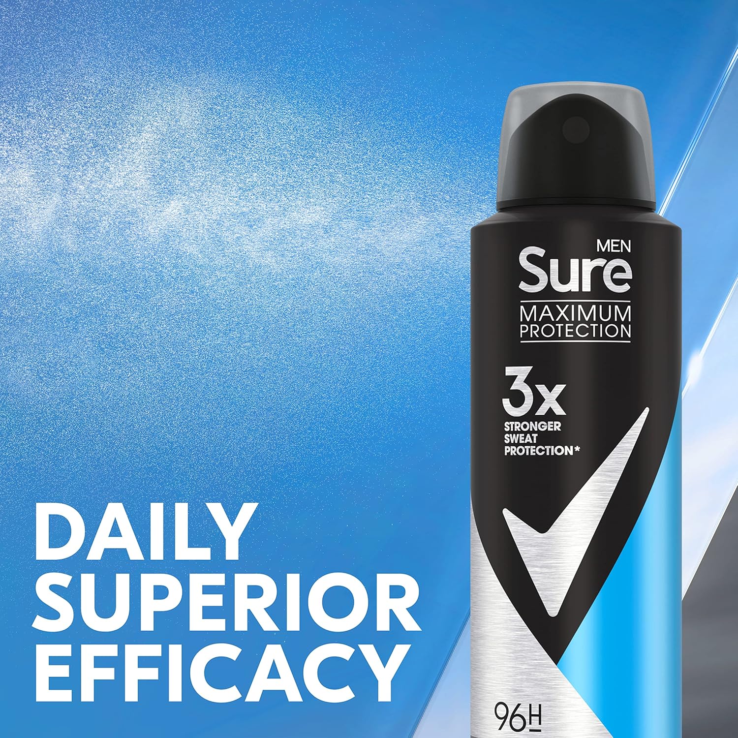 Sure Men Maximum Protection Clean Scent Anti-Perspirant Deodorant Spray With 3X Stronger* Sweat Protection Anti-Perspirant Deodorant Aerosol 96H Protection Against Sweat And Odour