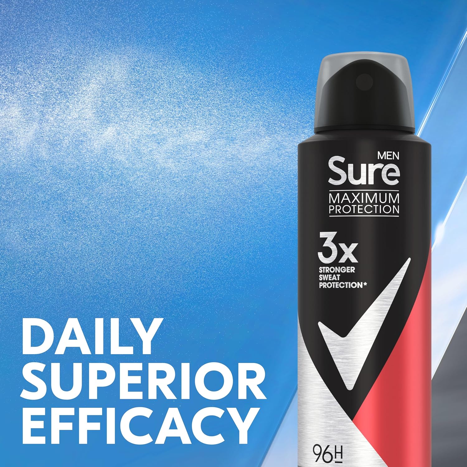 Sure Men Maximum Protection Sport Active Anti-Perspirant Deodorant Aerosol Anti-Perspirant Deodorant Spray With 3X Stronger* Sweat Protection 96H Protection Against Sweat And Odour 150 Ml