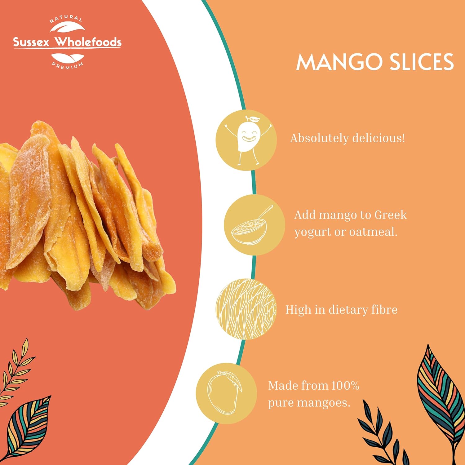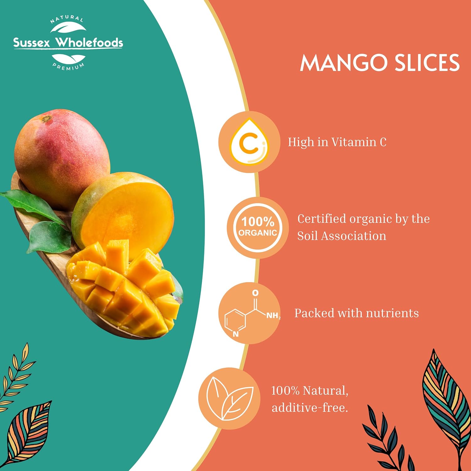 Sussex Wholefoods Organic Mango Slices 250G - Naturally Sweet, Healthy Snack, Premium Quality