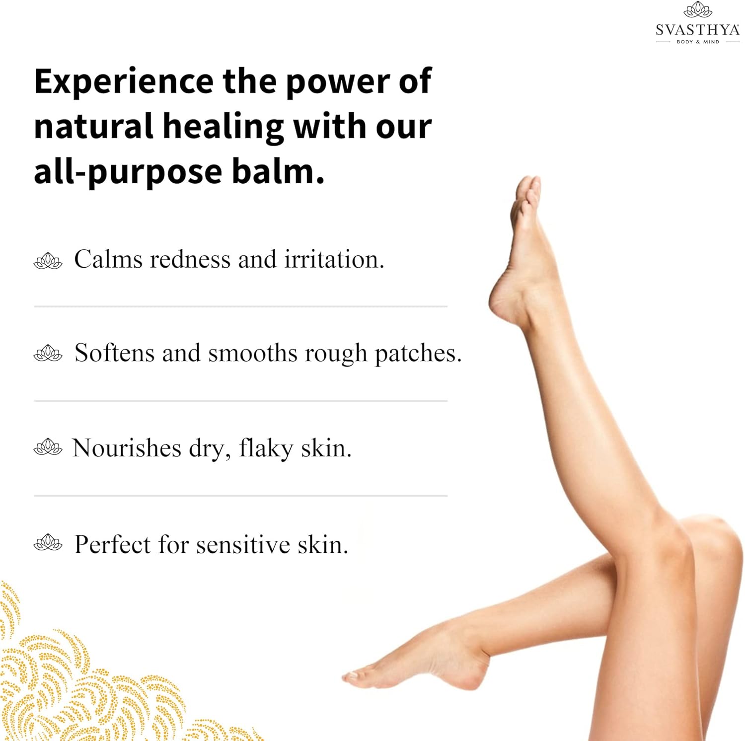 Svasthya Body & Mind Essential Oil Heal All Balm - Cracked, Dryness, Wound And Irritation Healing - Natural Ingredients Skincare Balm With Lavender Oil - Fast Recovery - Multipurpose Uses