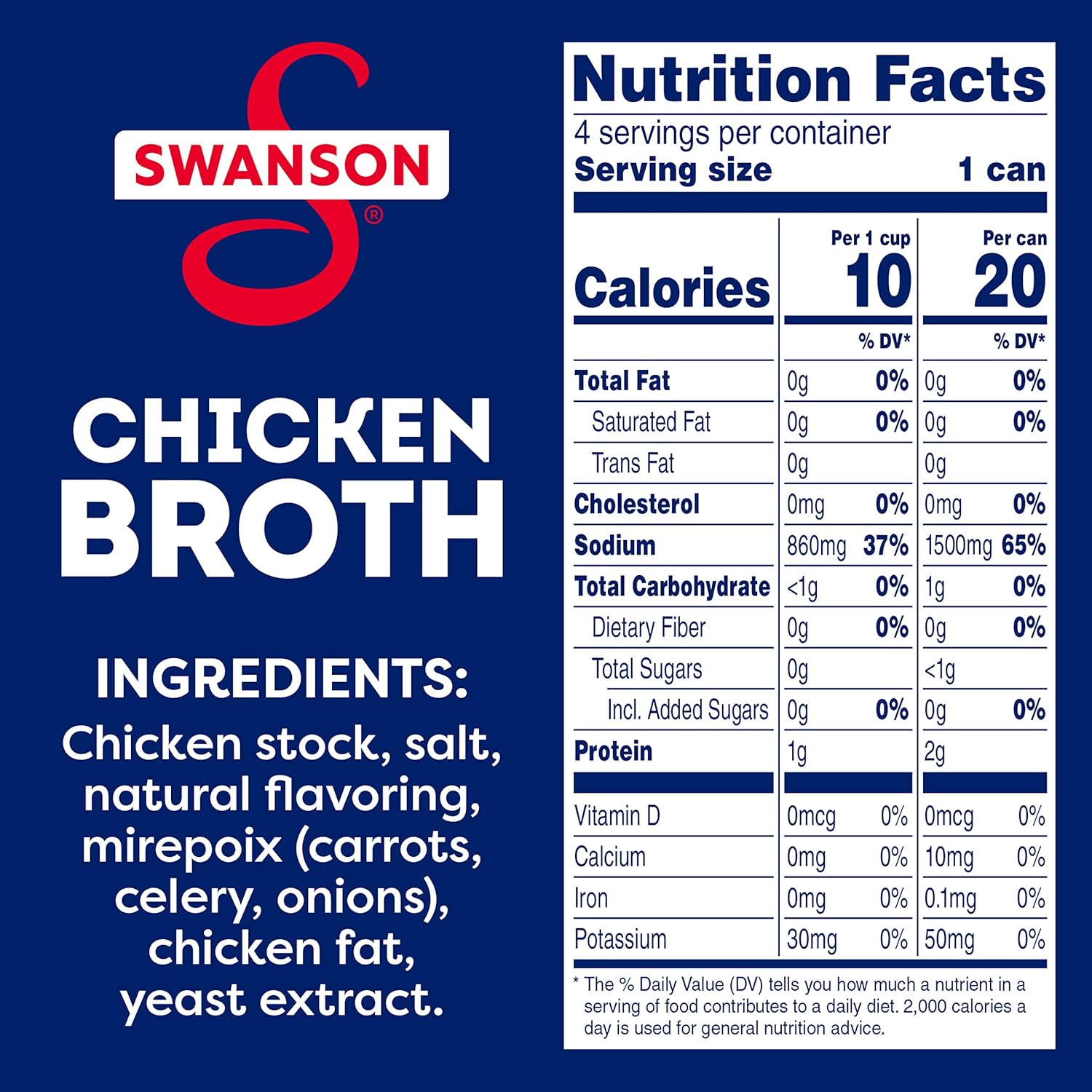 Elevate your homemade meals with the rich, full-bodied flavor of Swanson Chicken Broth. This flavorful chicken broth brings together the perfectly balanced flavors of farm-raised chicken, vegetables picked at the peak of freshness and high-quality seasonings in a convenient recyclable can. And just like homemade, our canned broth uses only 100% natural, non-GMO ingredients, no artificial flavors or colors, and no preservatives. More convenient than chicken bouillon, this gluten free chicken broth is a versatile ingredient for your everyday cooking, adding flavor and moisture to both entrees and side dishes. It’s great as a soup base, and it can be used instead of water to boost rich flavor in rice, pasta and veggies. Swanson Chicken Broth is a must-have for your holiday cooking, bringing richer, elevated homemade flavor to mashed potatoes, stuffing and more. It’s not just any broth. It’s Swanson