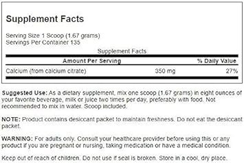Swanson 100% Pure And Dairy-Free Calcium Citrate Powder 8 Ounce (227 G) Pwdr