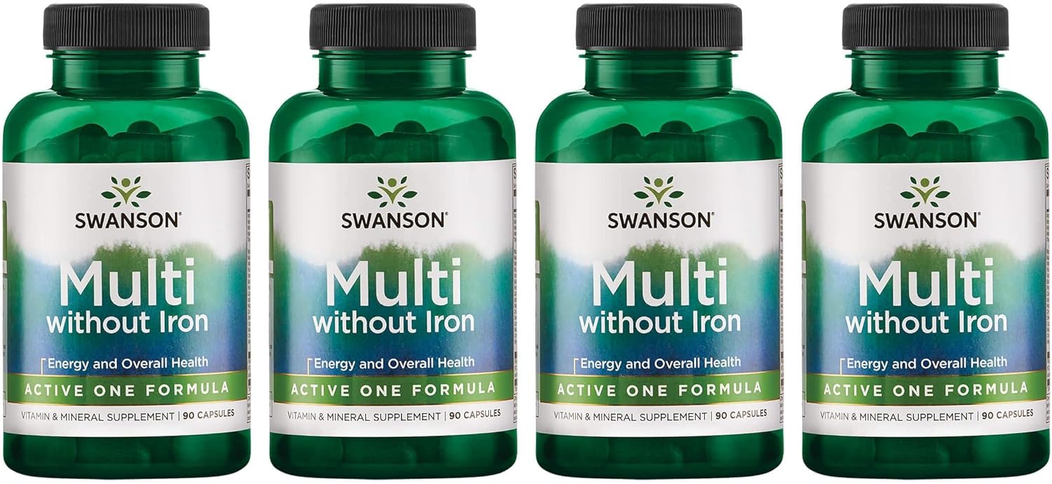 Swanson Active One Multivitamin Without Iron 90 Capsules (4 Pack)