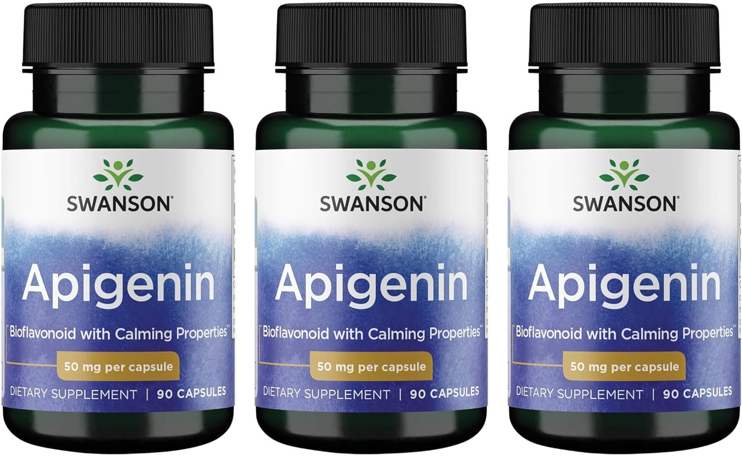 Swanson Apigenin Supplement For Sleep - 90 Caps, 50 Mg Each - Sleep And Relaxation With Stress Relief - Natural Support (Packaging May Vary) 3 Pack