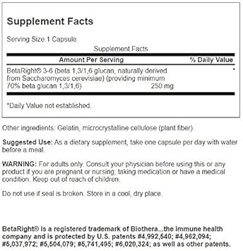 Swanson Betaright Beta Glucans 250 Milligrams 60 Capsules